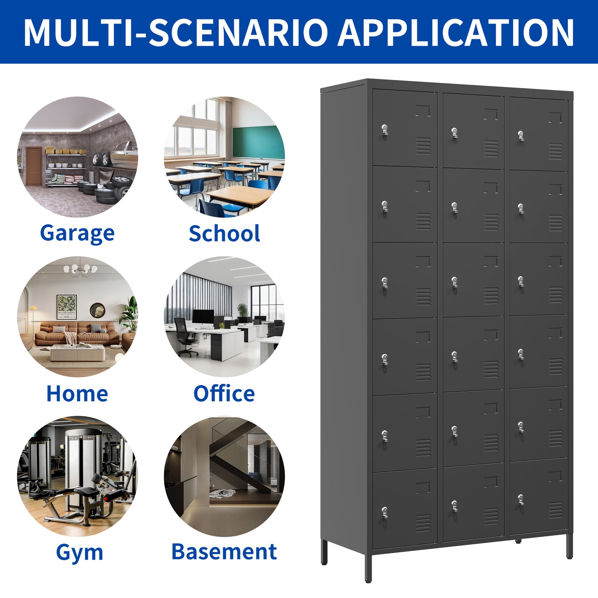 18 Door 72"H Metal Lockers With Lock For Employees,Storage Locker Cabinet For Home Gym Office School Garage,Easy Assembly,Black Freestanding 5 Or More Spaces Black Primary Living Space Door Locks