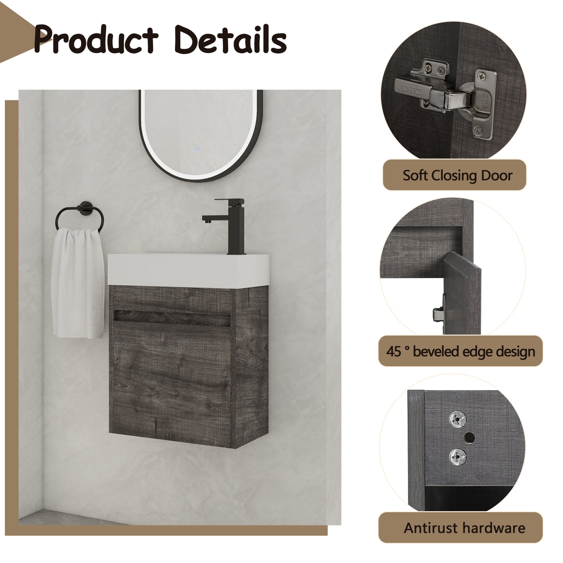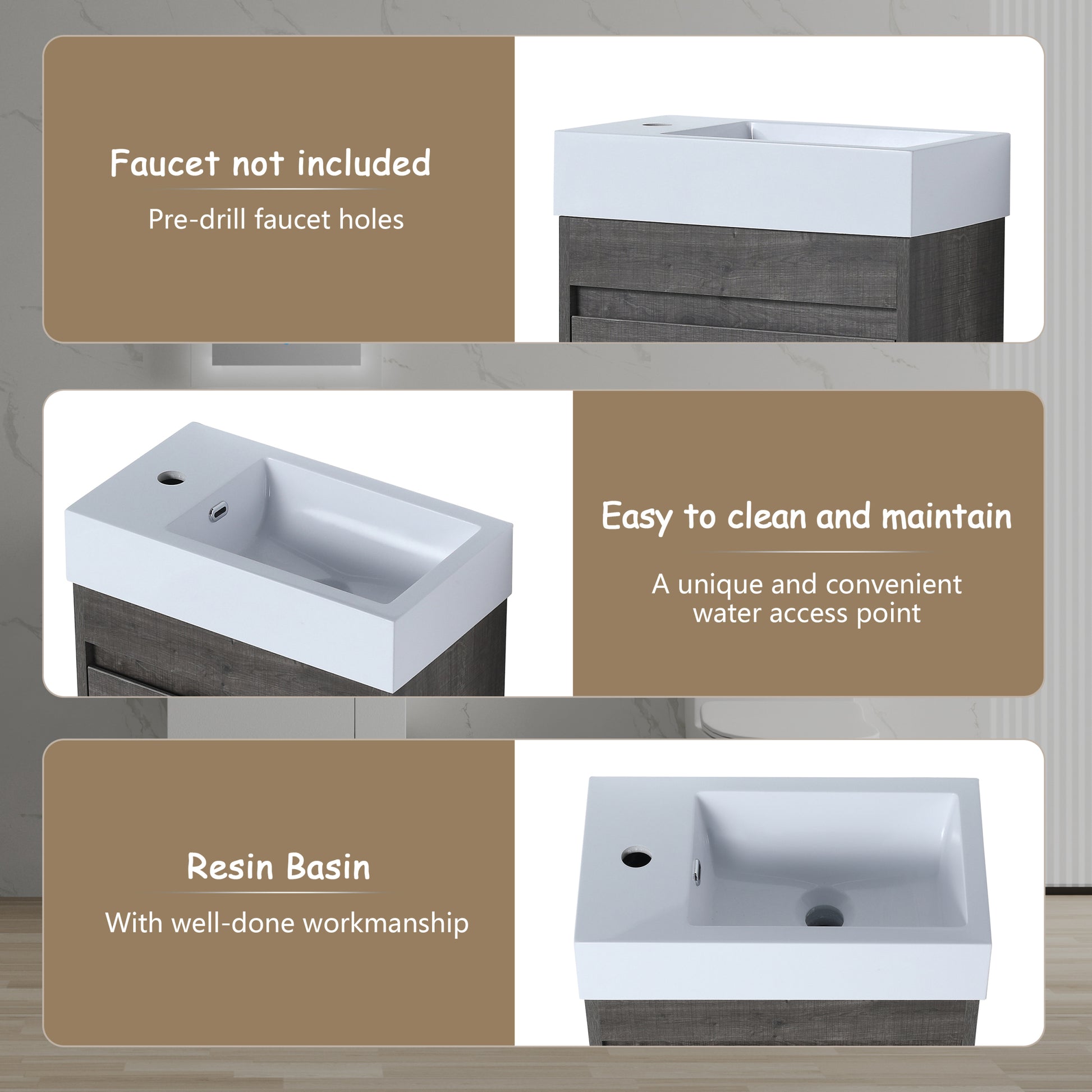 | Package includes: | - 1x Vanity Cabinet;- 1x Resin Sink |