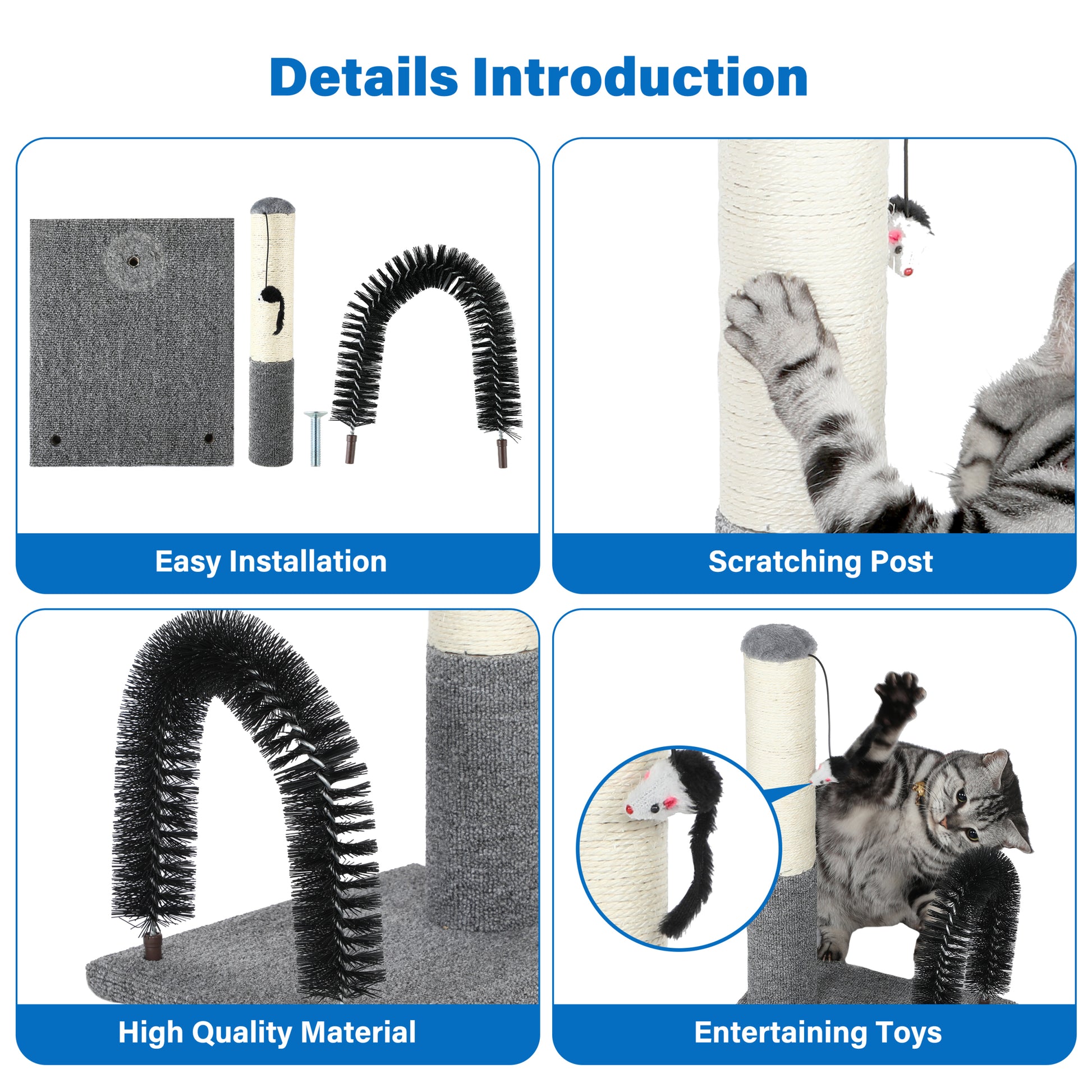 18 Inch Cat Scratching Post Pad With Cat Self Groomer,Cat Scratcher With Cat Brush,Kitten Scratch Post With Activity Dangling Ball,Indoor Cat Scratch Board For Kittens Kitty Cats,Protect Furniture Gray Cat Paper