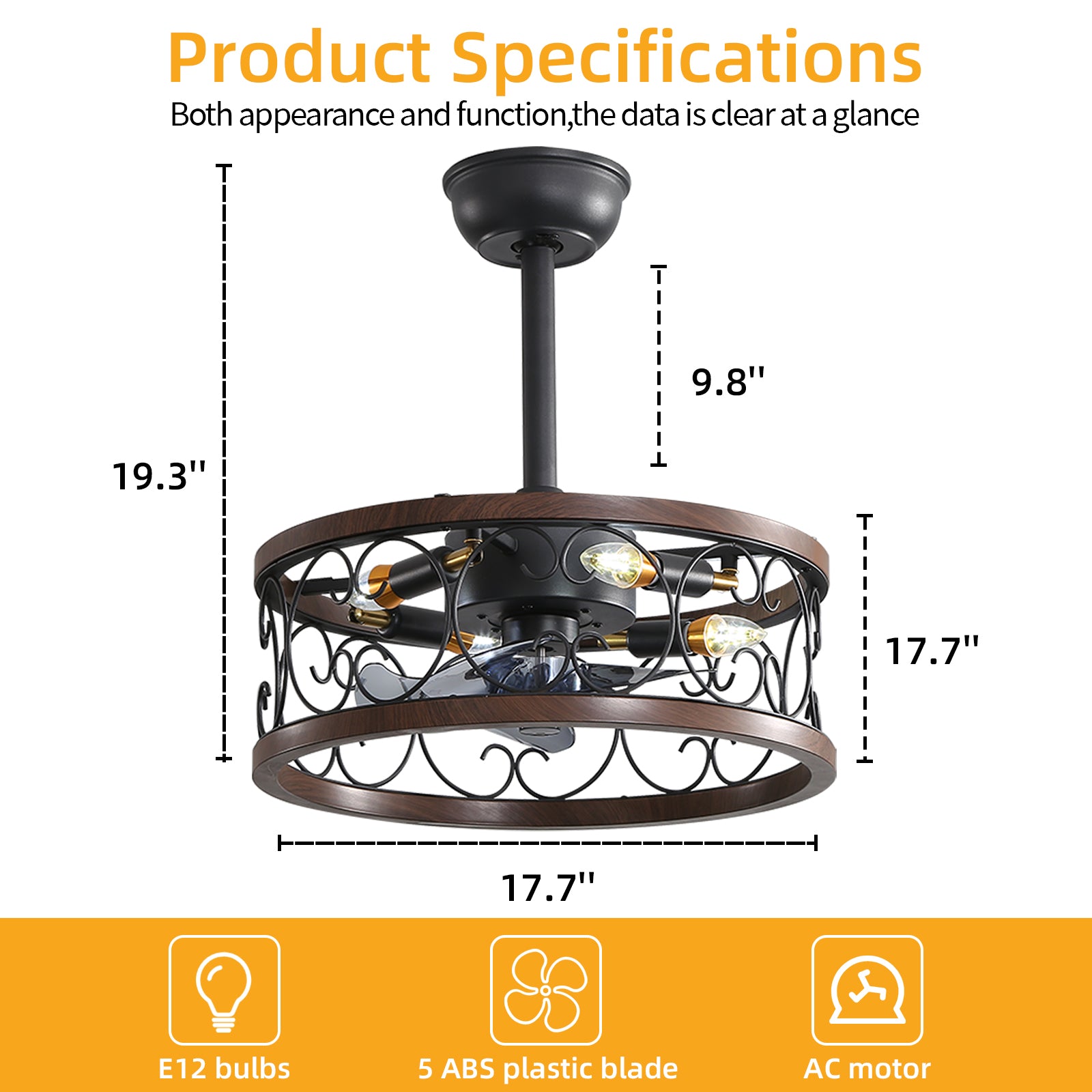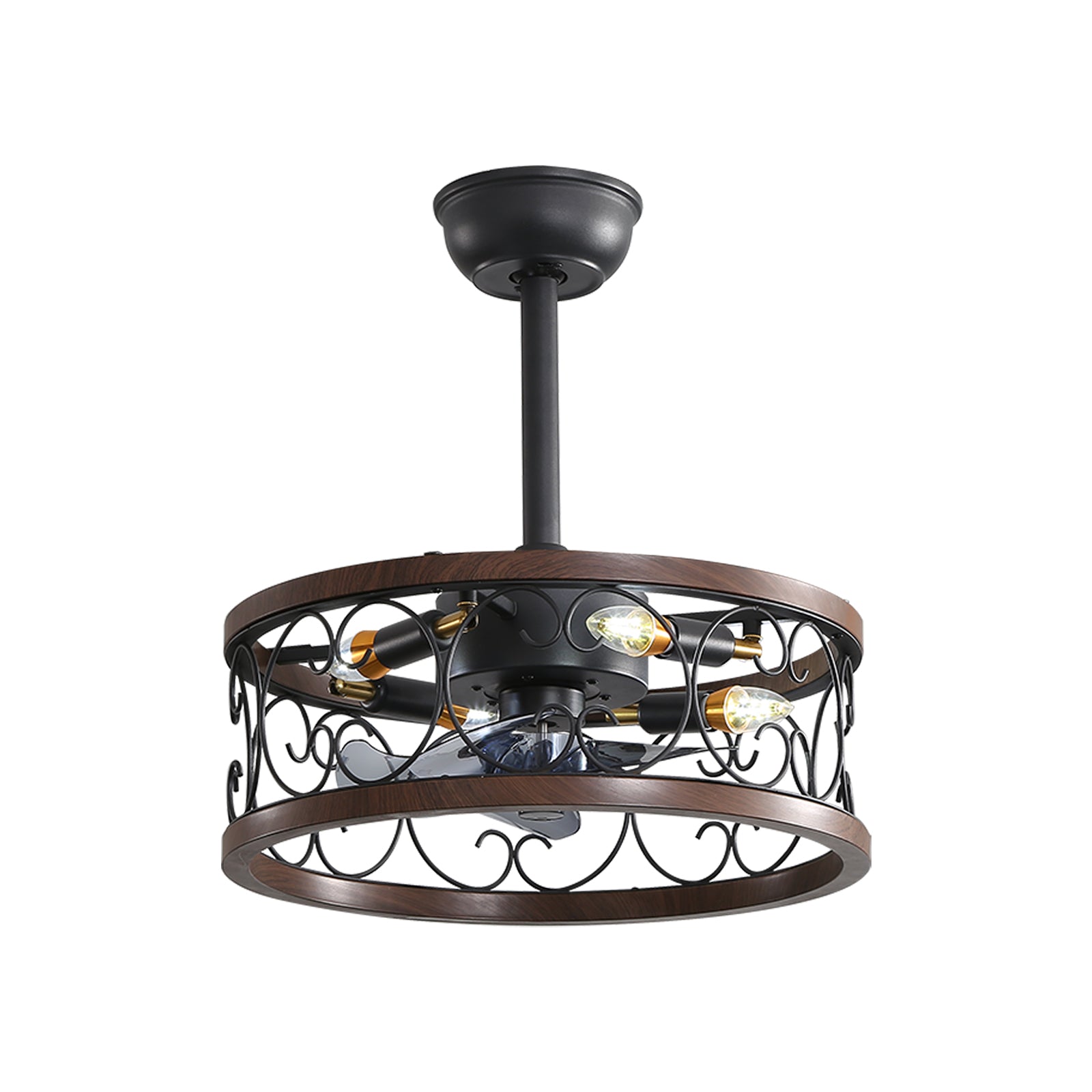 18Inch Caged Ceiling Fan With Lights Remote Control For App Note:No On Bulbs Brown Retro Iron