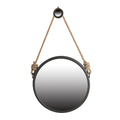 19.5" In Handsome Cleveland Mirror With Rope Strap Contemporary Design Circle Mirror With Grey Round Metal Frame For Wall Decor Bathroom, Entryway Black And Silver Iron