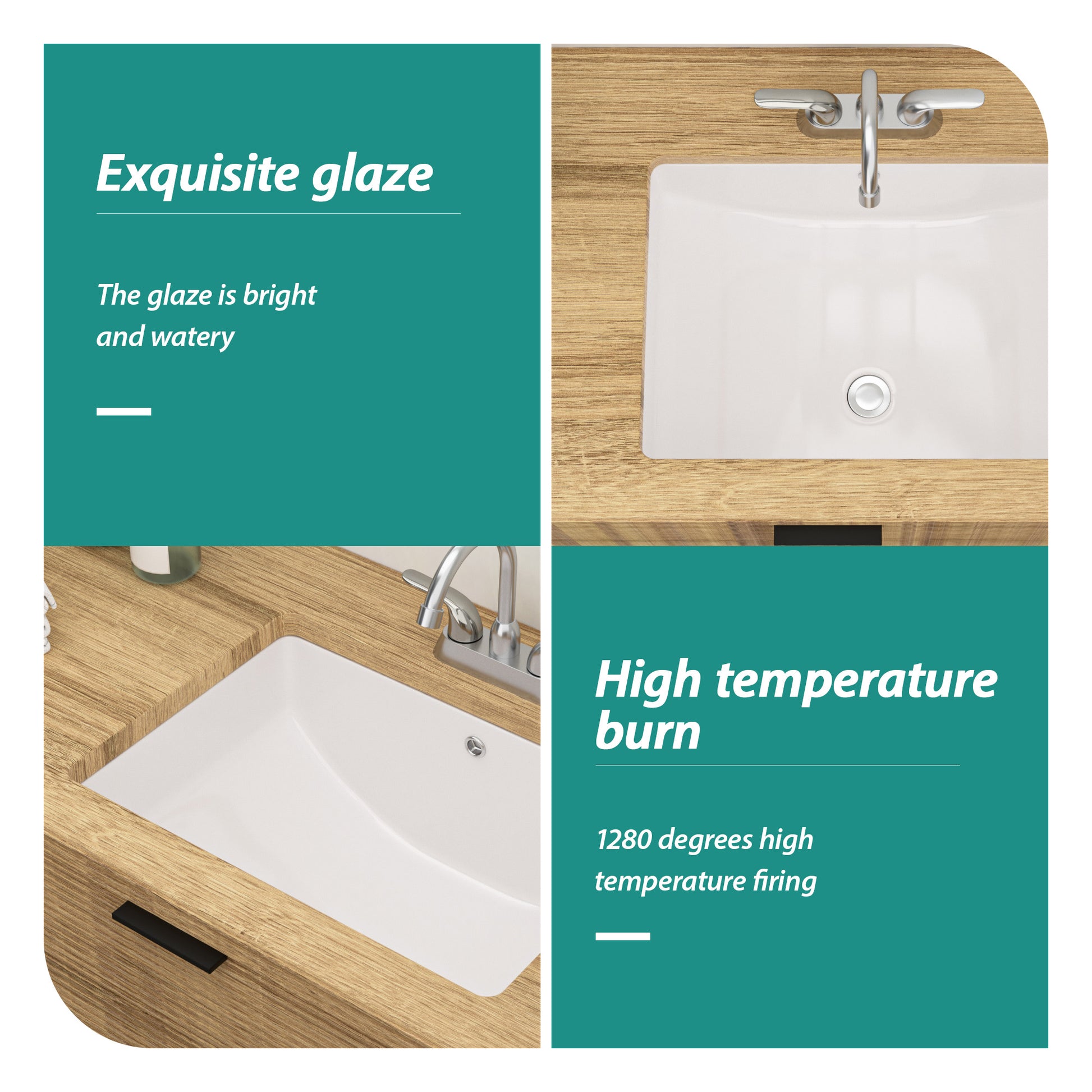 19.7"X14" White Ceramic Rectangular Undermount Bathroom Sink With Overflow White Ceramic