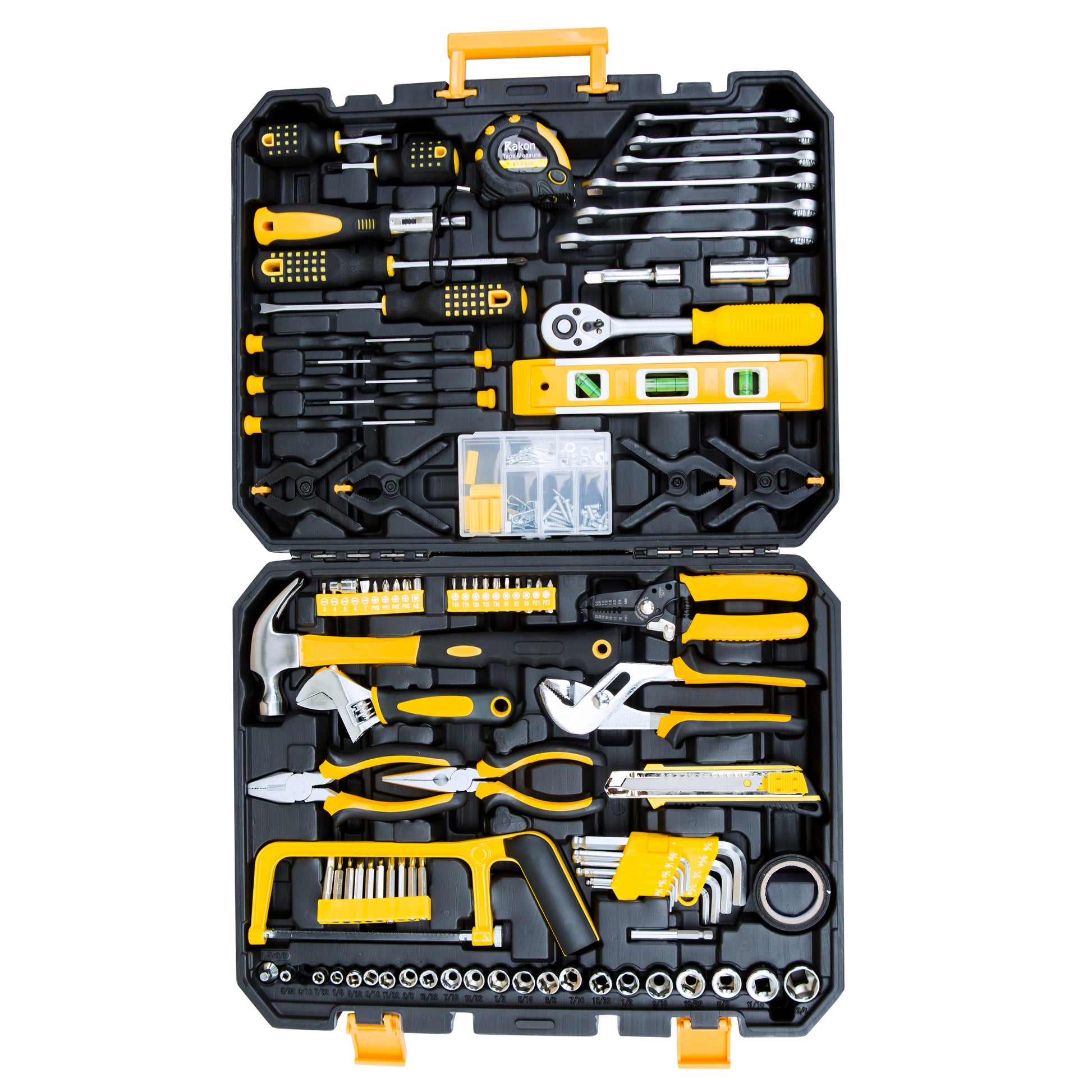 198 Piece Mechanics Tool Set With Socket Household Hand Tool Kit Basic Tool Combination With Plastic Toolbox Storage Case Yellow Black Steel