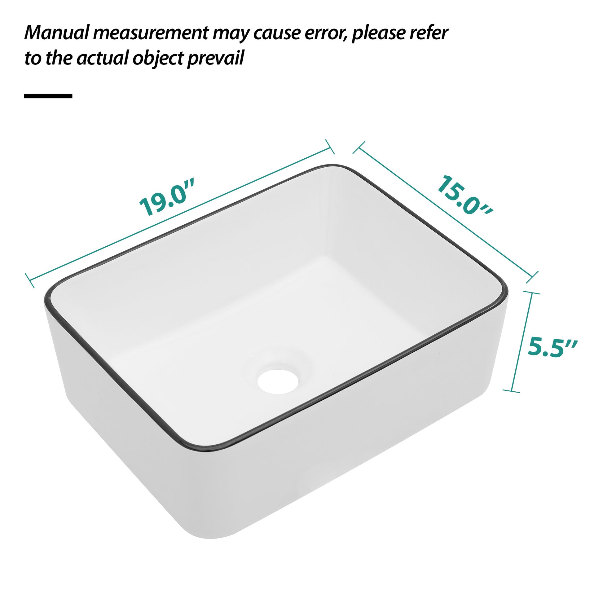 19X15 Inch White Ceramic Rectangular Vessel Bathroom Sink White Ceramic