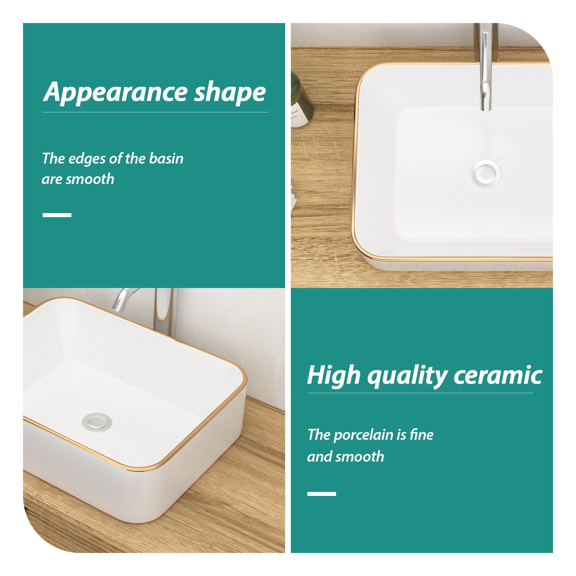 19X15 Inch White Ceramic Rectangular Vessel Bathroom Sink White Ceramic