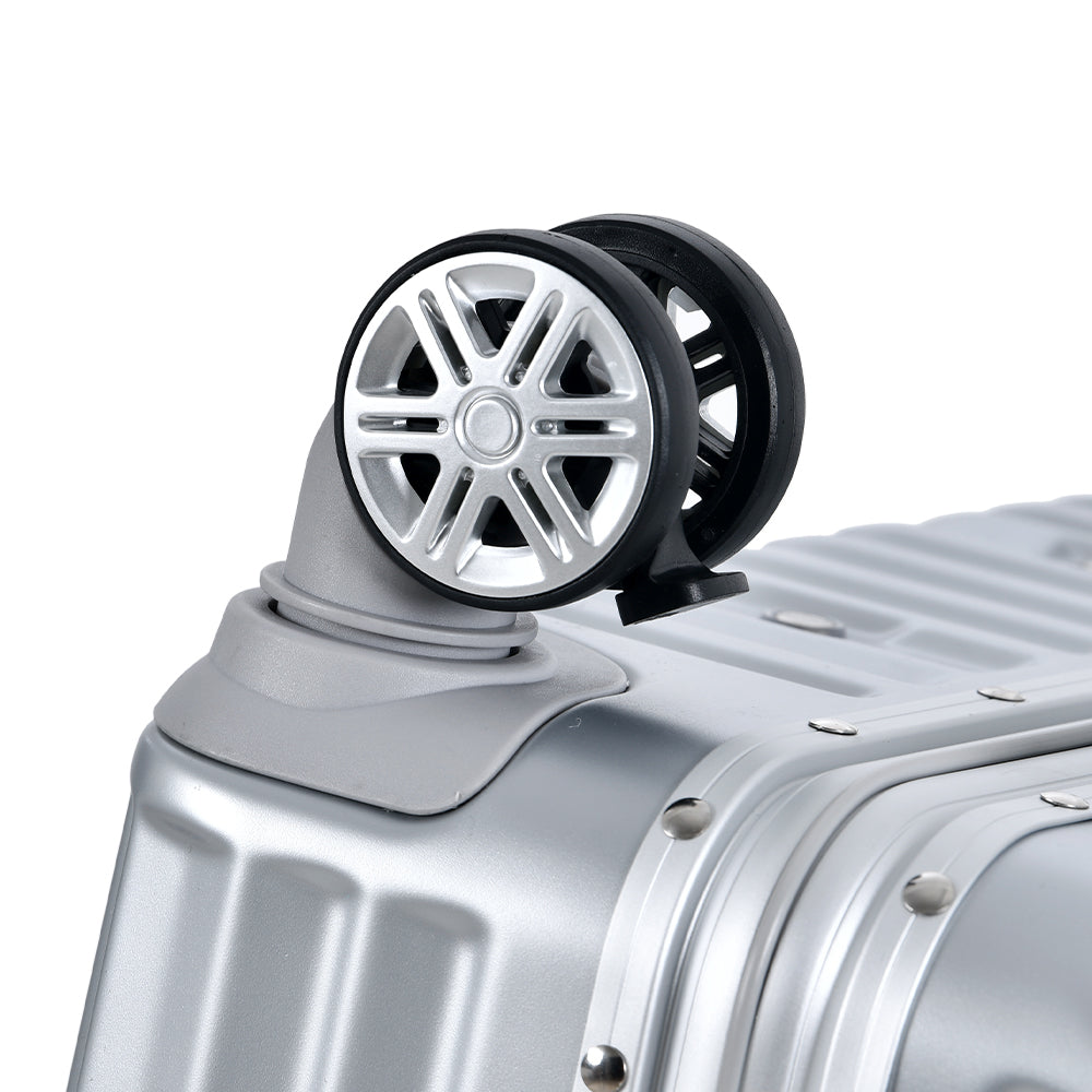 1Pc 20In Aluminum Frame Luggage With Usb Port, Vacation Carry On Suitcase With Spinner Wheels And Tsa Lock, Travel Trolley Case For Short Business Trips, Beach Holidays, Gray Silver Silver Abs Pc