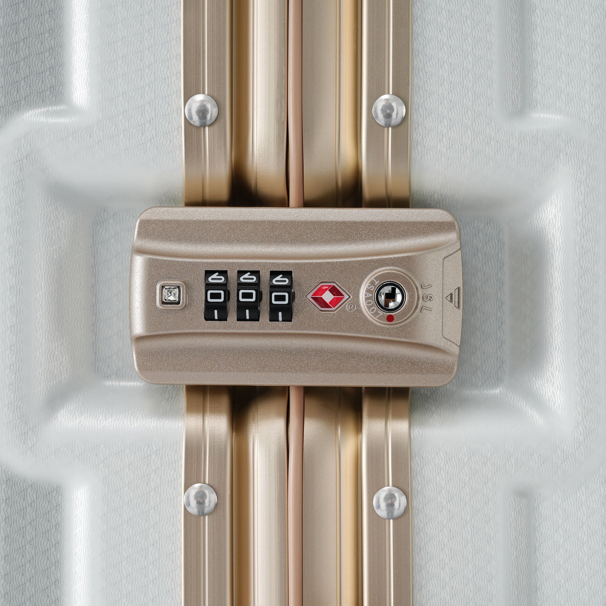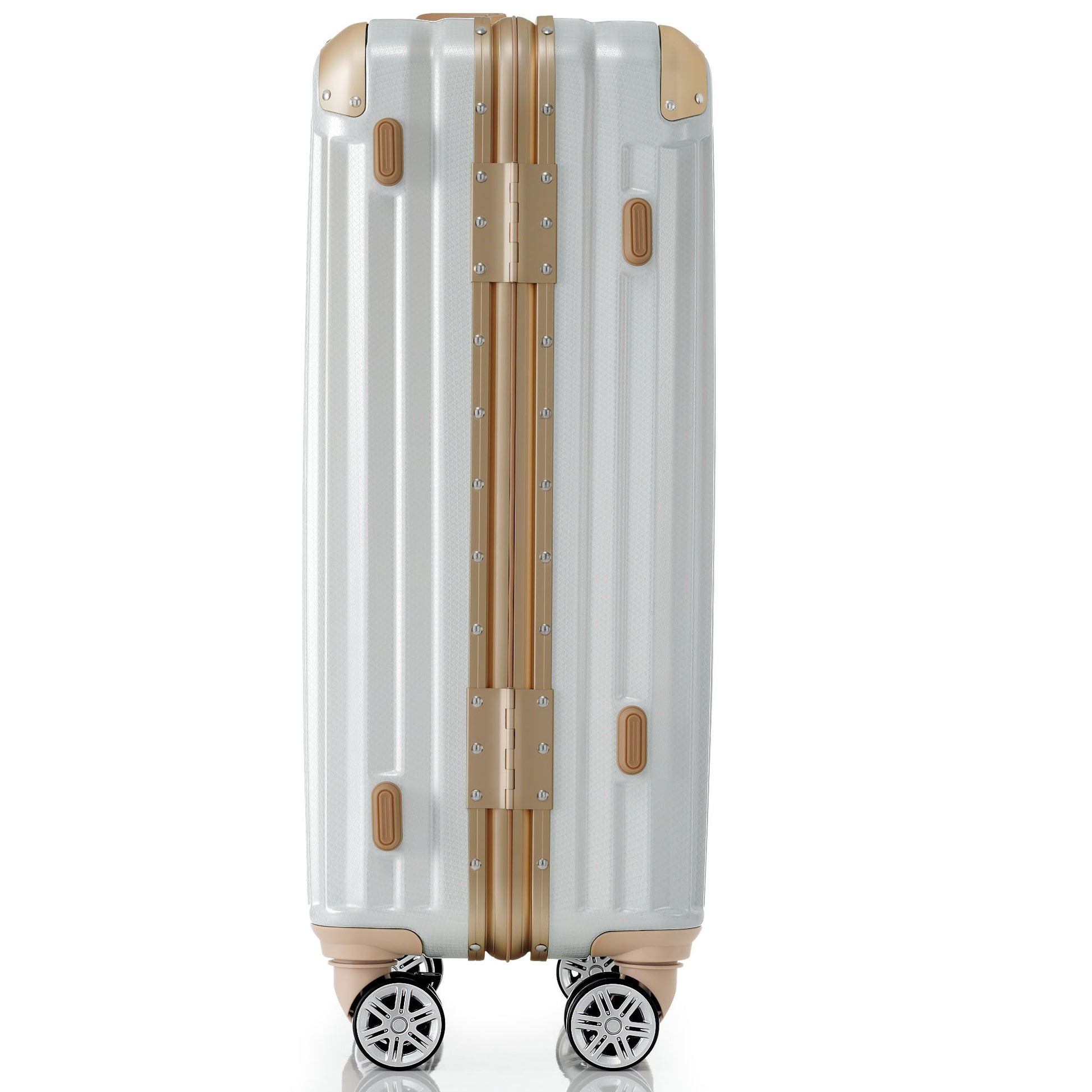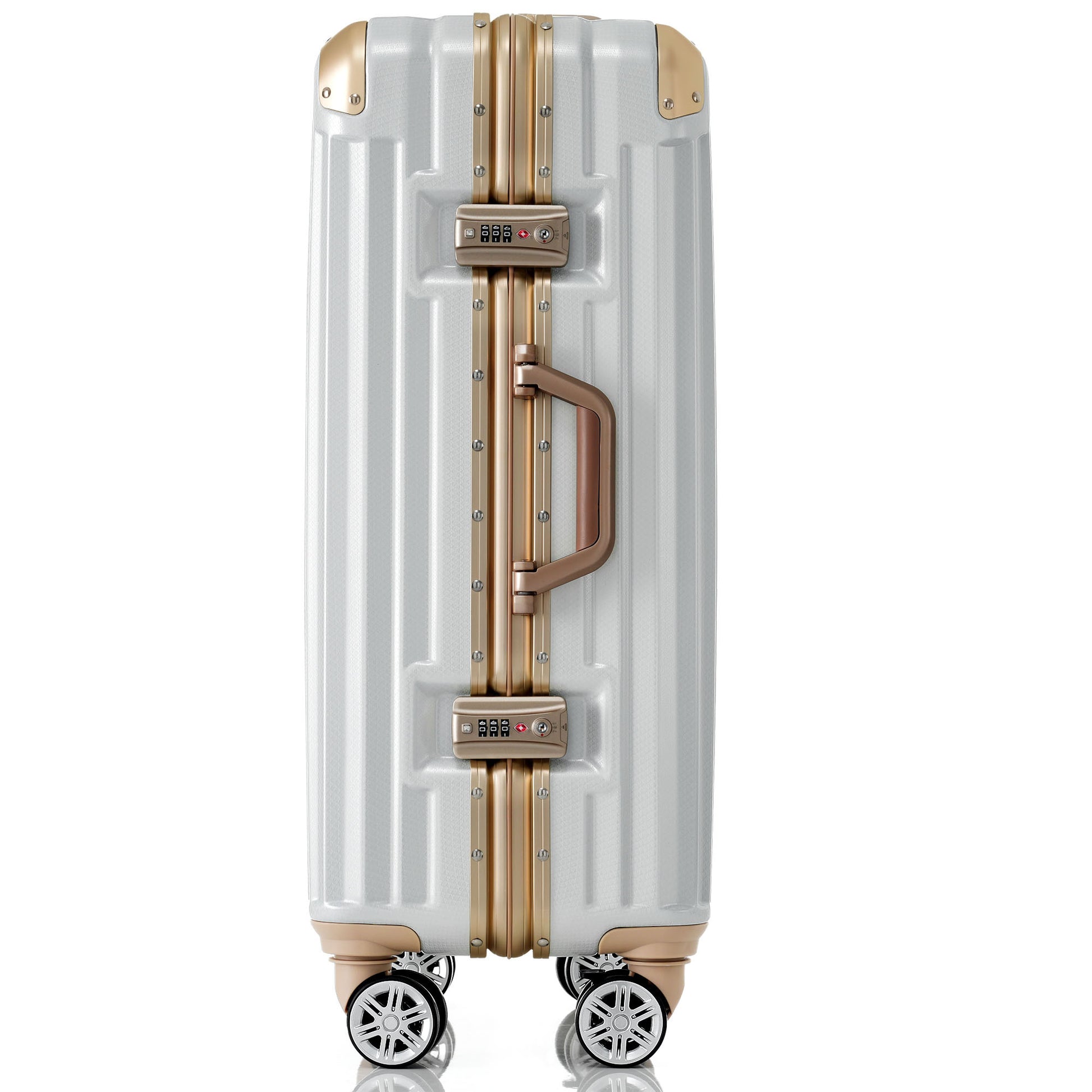 1Pc 28In Aluminum Frame Luggage With Usb Port, Vacation Carry On Suitcase With Spinner Wheels And Tsa Lock, Travel Trolley Case For Short Business Trips, Beach Holidays, Moonlight Gloss White Abs Pc