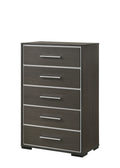 1Pc Contemporary 5 Drawer Chest With Chrome Accents Gray Rustic Finish Bedroom Wooden Furniture Gray Bedroom Contemporary,Rustic Wood