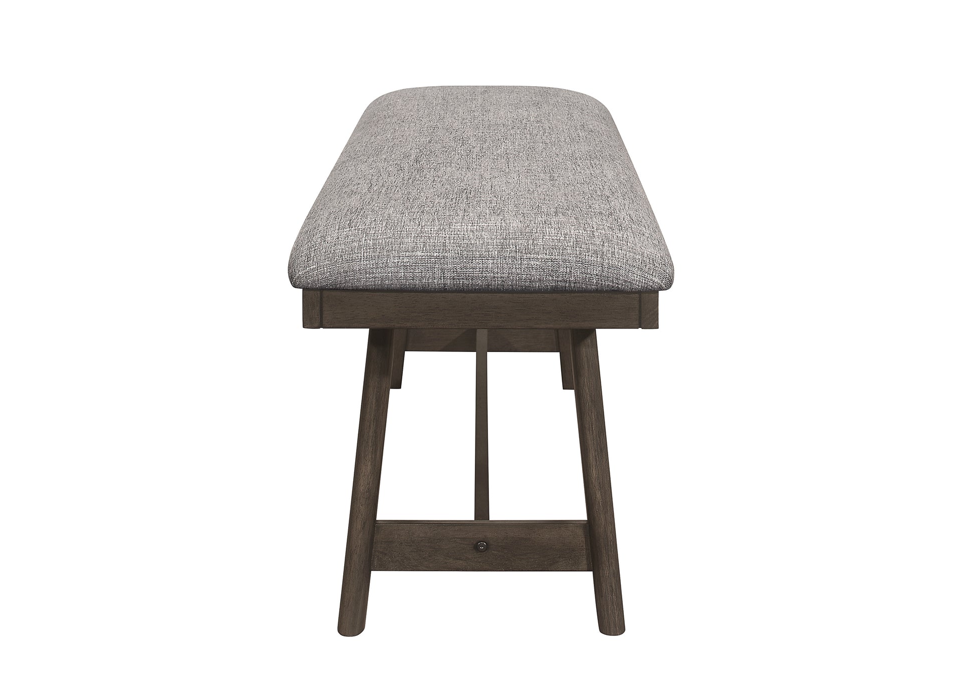 1Pc Dark Brown Finish Transitional Bench Upholstered Seat Gray Linen Look Fabric Wooden Furniture Brown Solid Wood