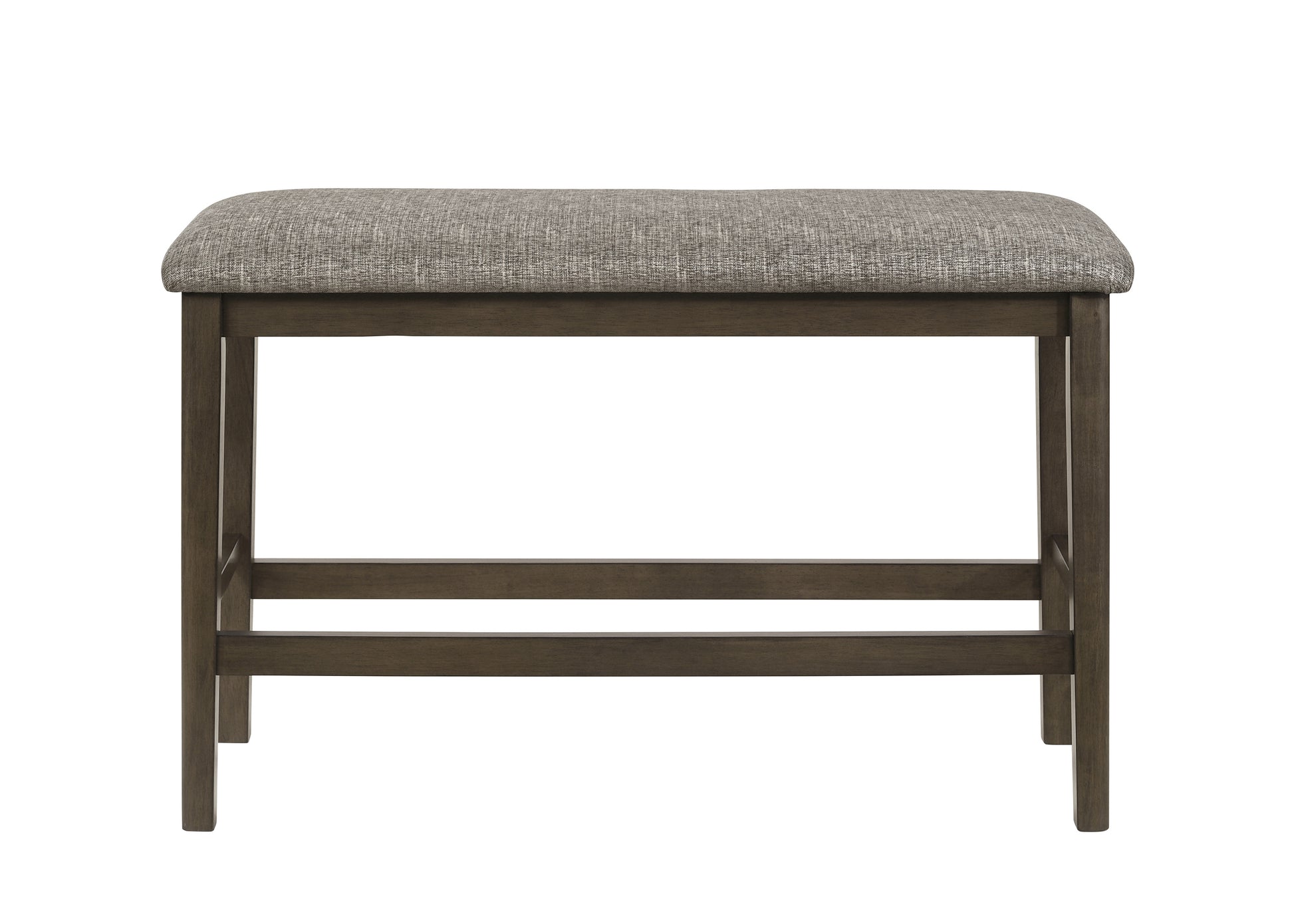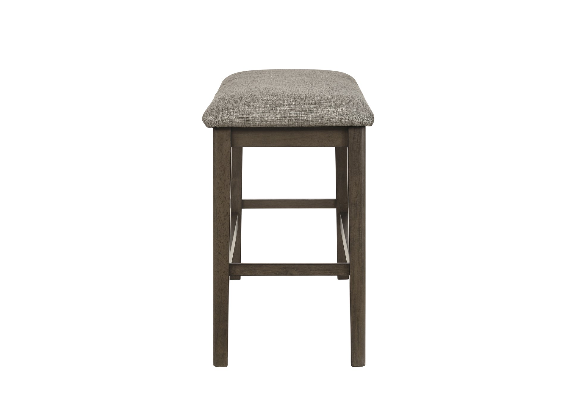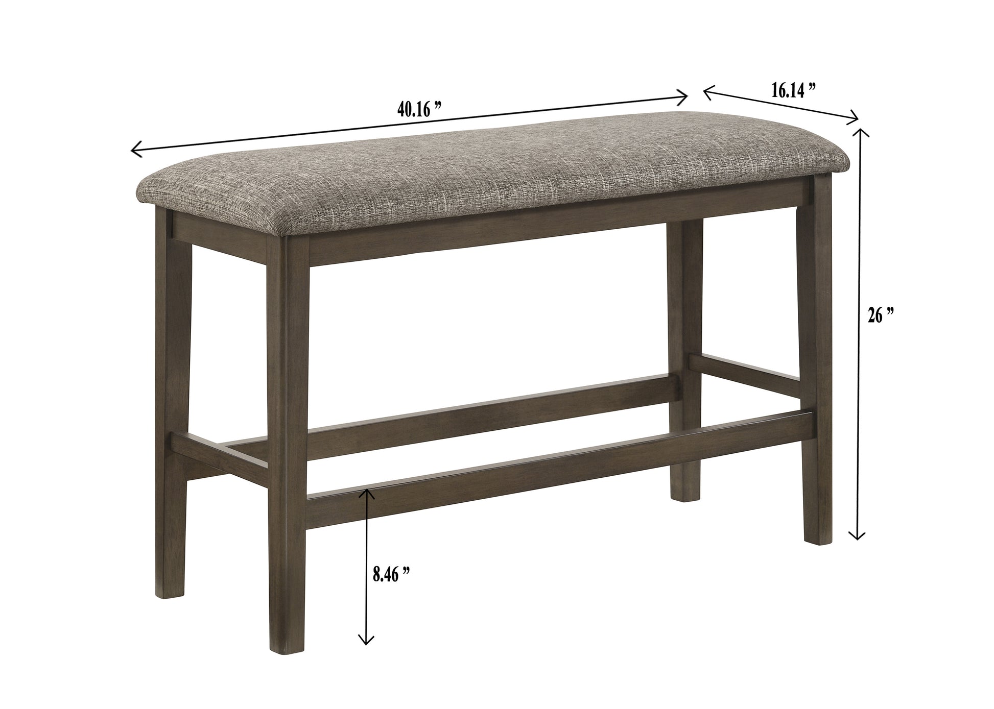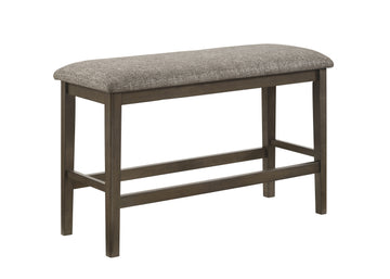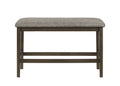 1Pc Dark Brown Transitional Counter Height Bench Upholstered Seat Gray Linen Finish Wooden Furniture Brown Solid Wood