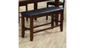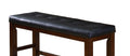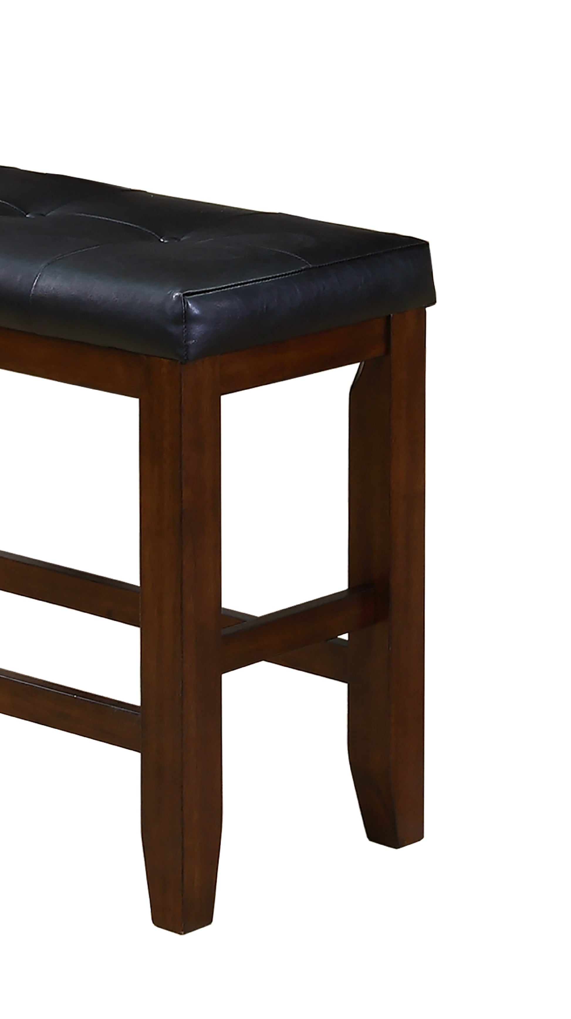 Product Description: This counter height bench adds great seating to complement the rectangular counter height table. The tufted upholstery seat with the look of leather fabric adds chic sophistication to this contemporary style bench.