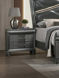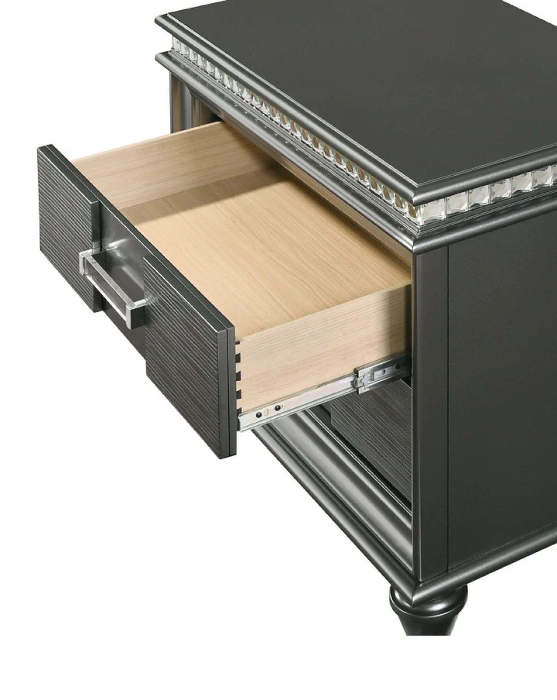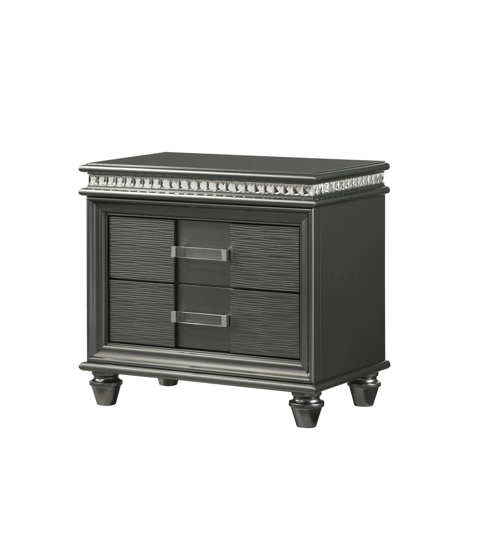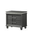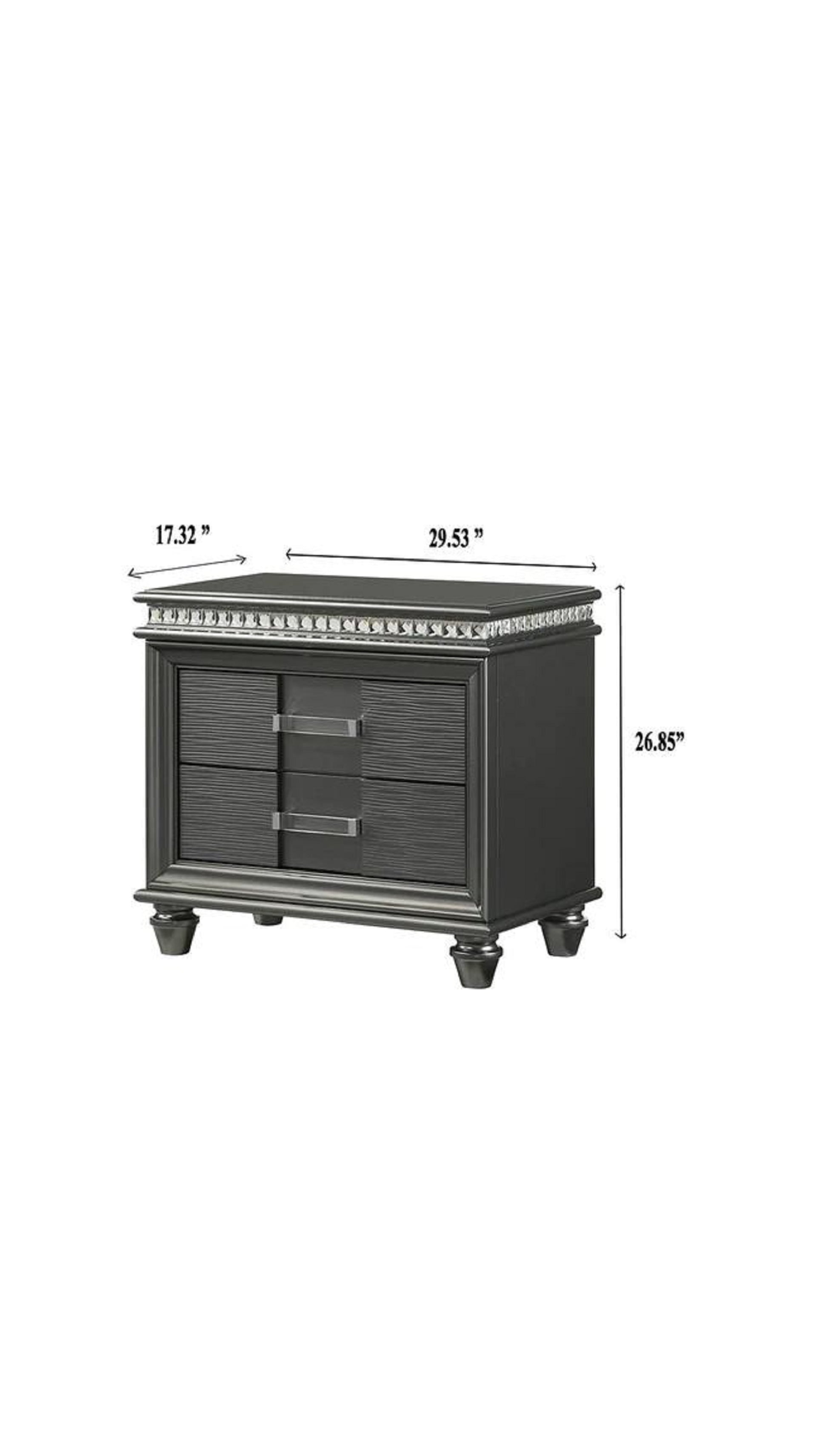 1Pc Modern Glam Style Dark Gray Finish Crystal Inlay Edges Two Drawer Nightstand Dark Gray Solid Wood