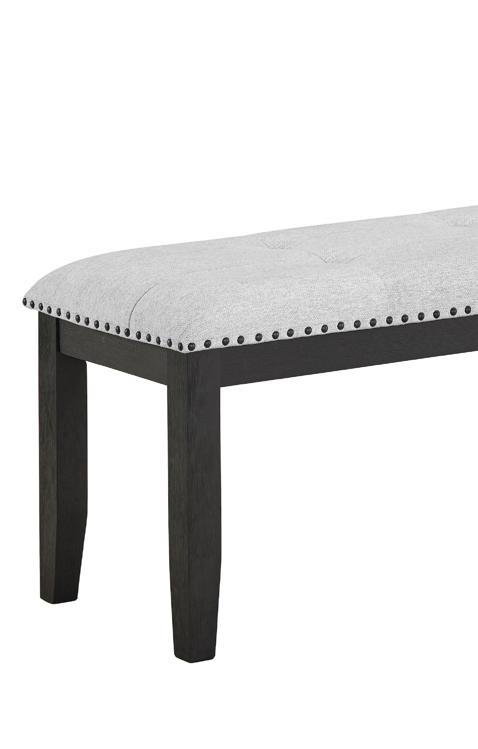 Product Description: This upholstered dining bench is the perfect blend of style and comfort. The black finish adds a touch of modern sophistication to any dining room, living space or entryway, while the soft grey upholstery offers a neutral tone that complements virtually any decor. The button-tufted seat provides a chic, refined look, while the cushioned bench offers comfortable seating for family and guests. Whether you're hosting a dinner party or simply enjoying a cup of coffee, this bench is sure to impress with its elegant yet versatile style.