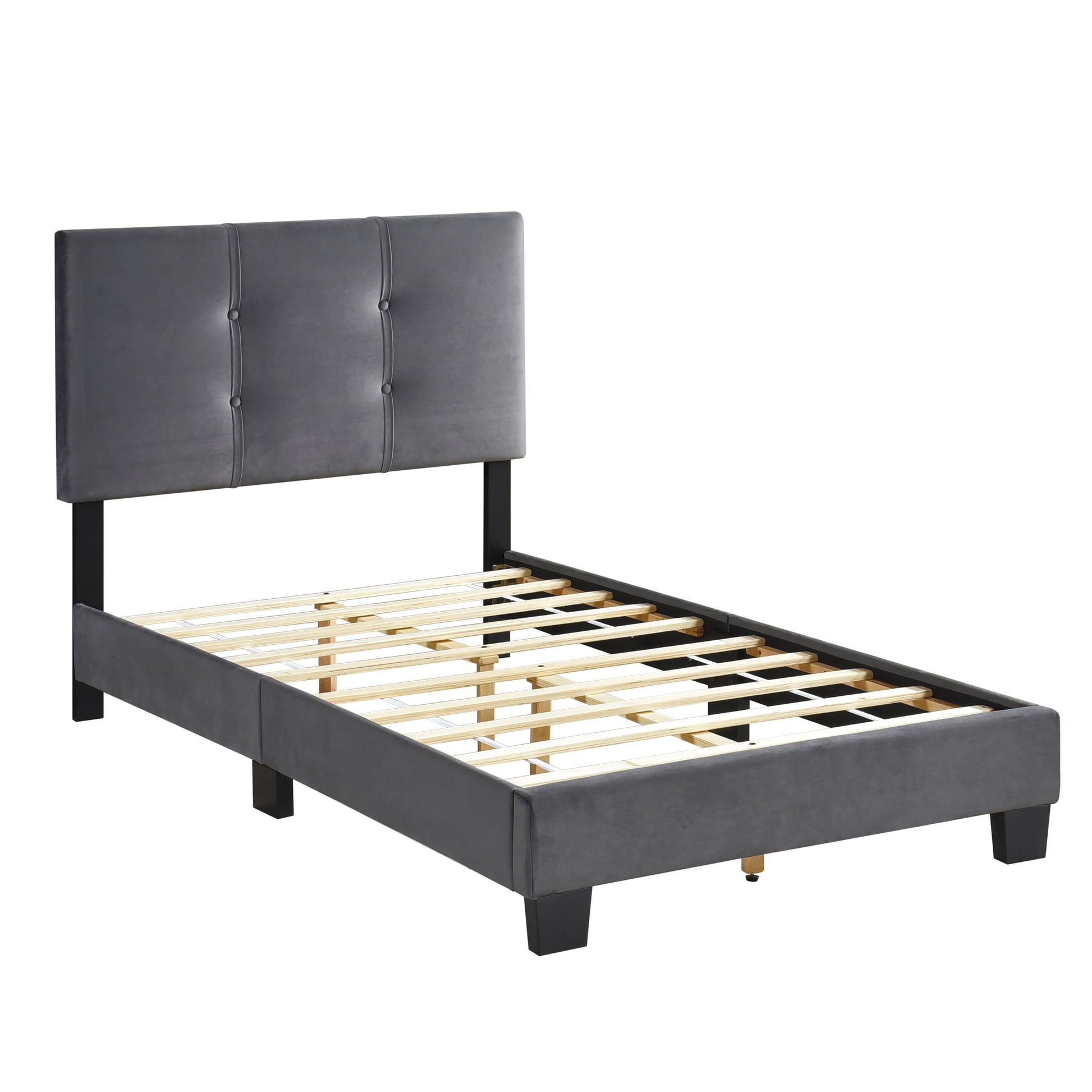 1Pc Twin Platform Bed Dark Gray Velvet Upholstered Adjustable Height Headboard Button Tufted Solid Wood Bedroom Furniture Box Spring Not Required Twin Dark Gray Wood Bedroom Velvet Solid Wood