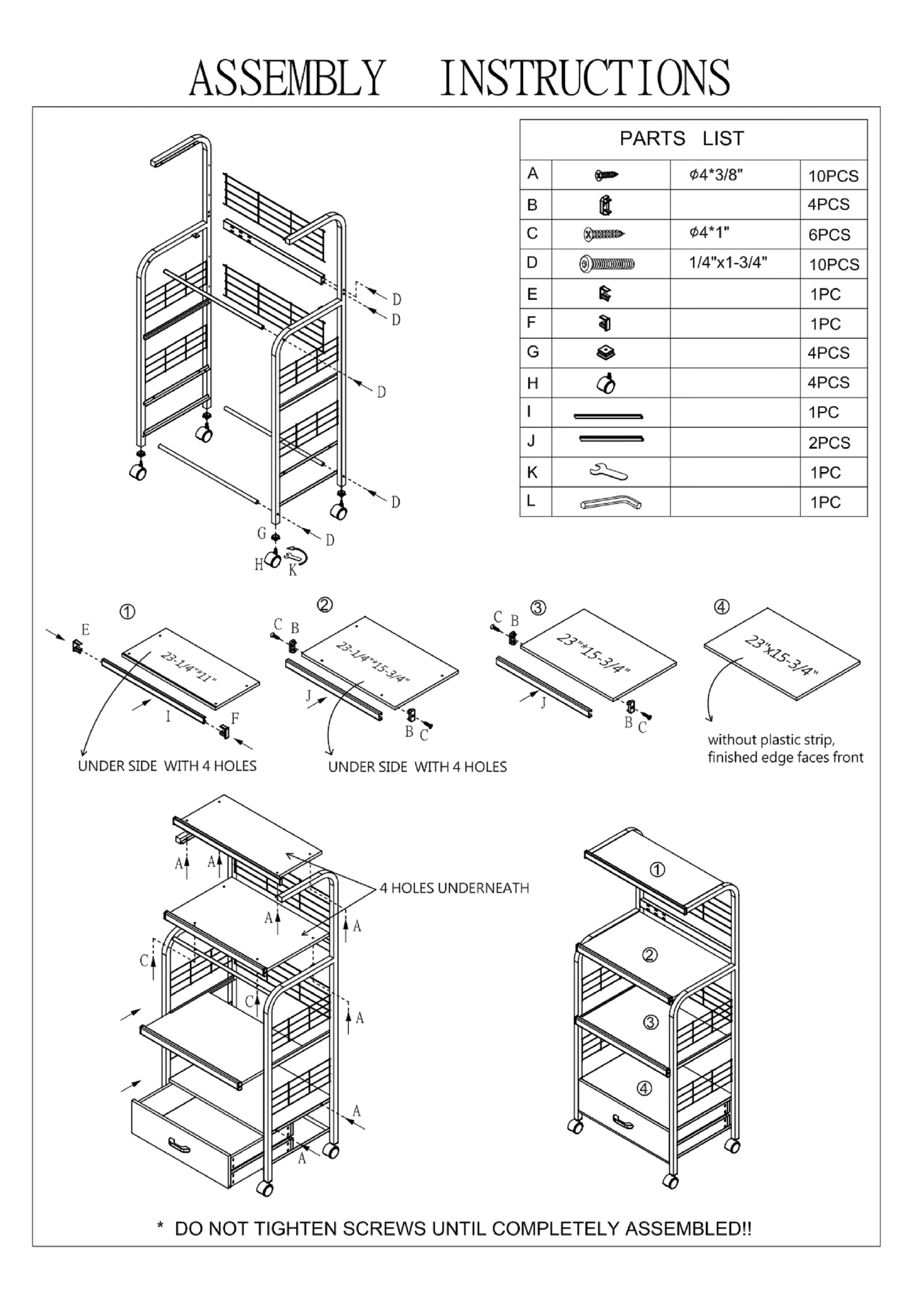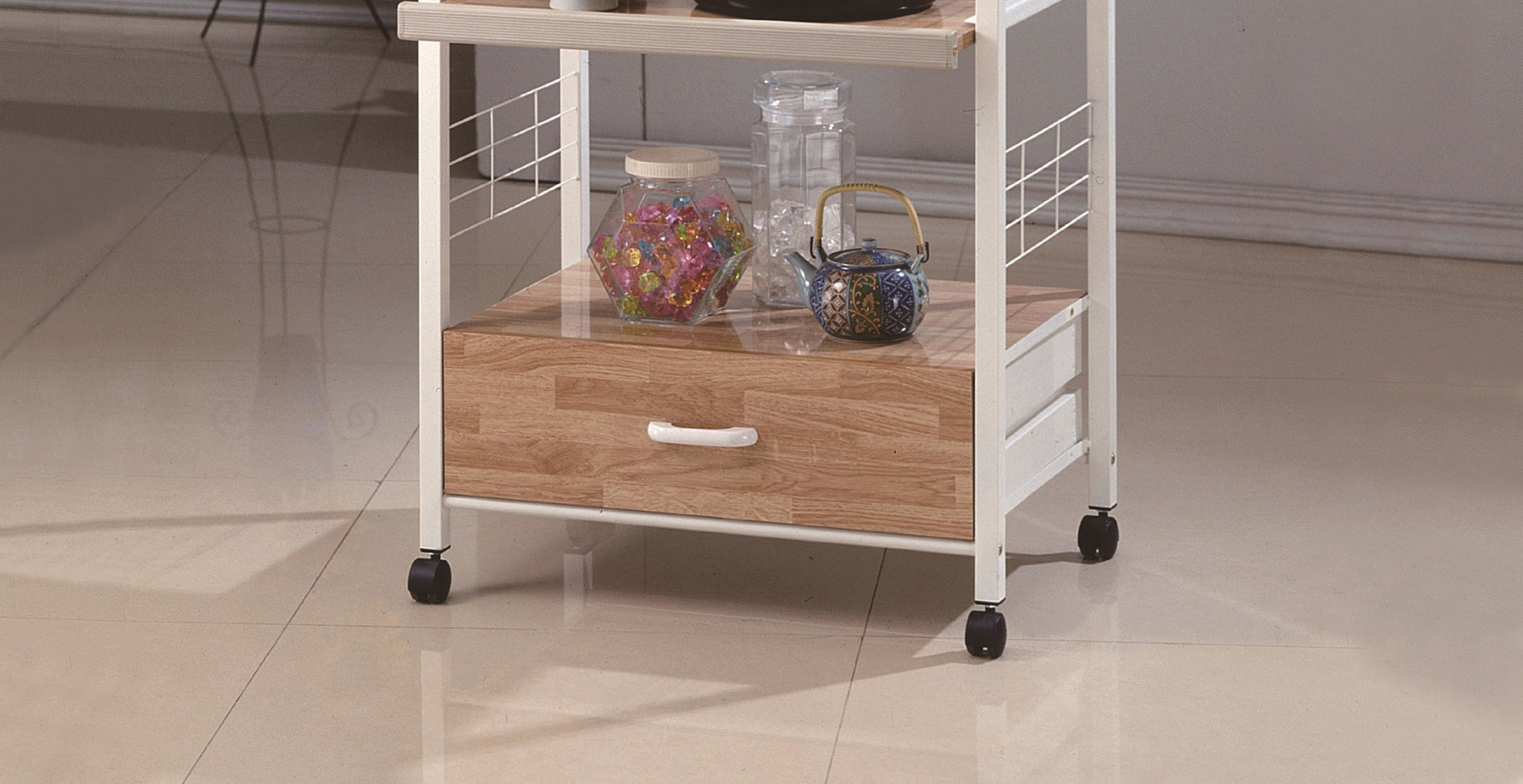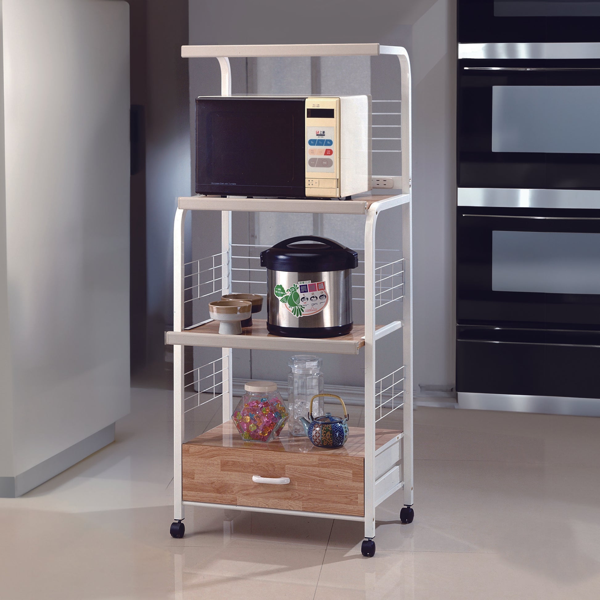 1Pc White Kitchen Cart Open Shelves Metal Frame White Kitchen Metal,Wood