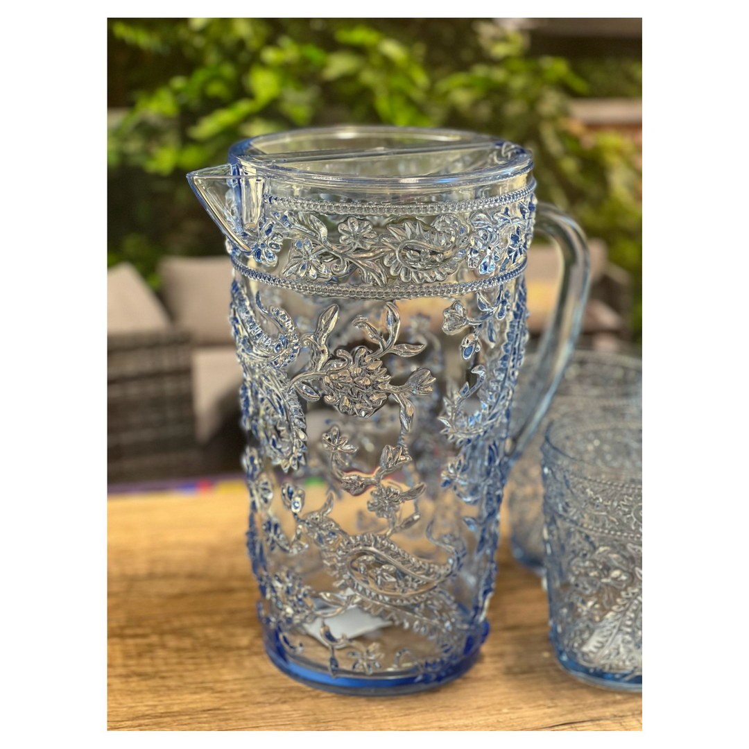 2.5 Quarts Water Pitcher With Lid, Paisley Unbreakable Plastic Pitcher, Drink Pitcher, Juice Pitcher With Spout Bpa Free Blue Acrylic