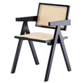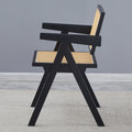 2 Dining Chairs, Black, Using Rubber Wood Solid Wood Production, Rattan Weaving Process, Armrest Solid Wood Dining Chair, Living Room Chair, Simple And Natural Black Rubber Wood