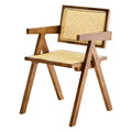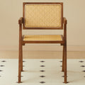 2 Dining Chairs, Walnut Color, Using Rubber Wood Rattan Weaving Process, Armrest Solid Wood Dining Chair, Living Room Chair, Simple And Natural Walnut Rubber Wood