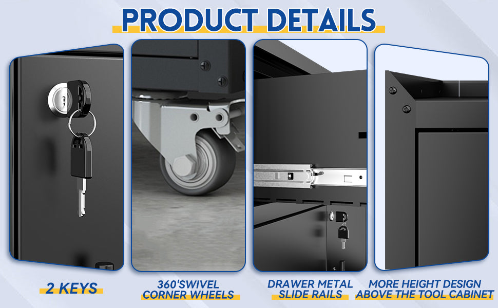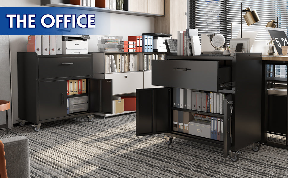 2 Door 1 Drawer Tool Cabinets For Garage, Lockable Garage Storage Cabinet, Locking Metal Storage Cabinet With Wheels, Rolling Tool Chest, Assembly Required H35.4*W30.3*D18 Black American
