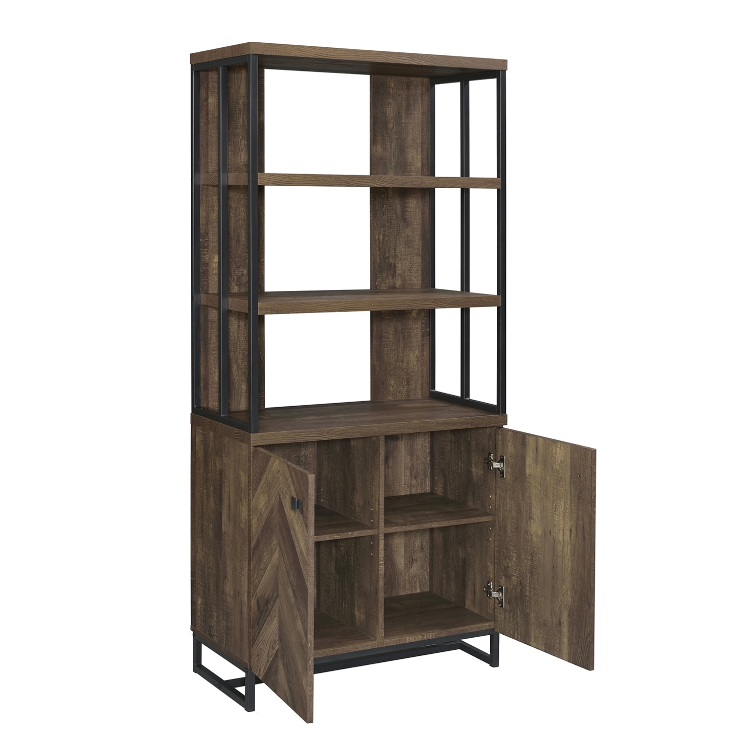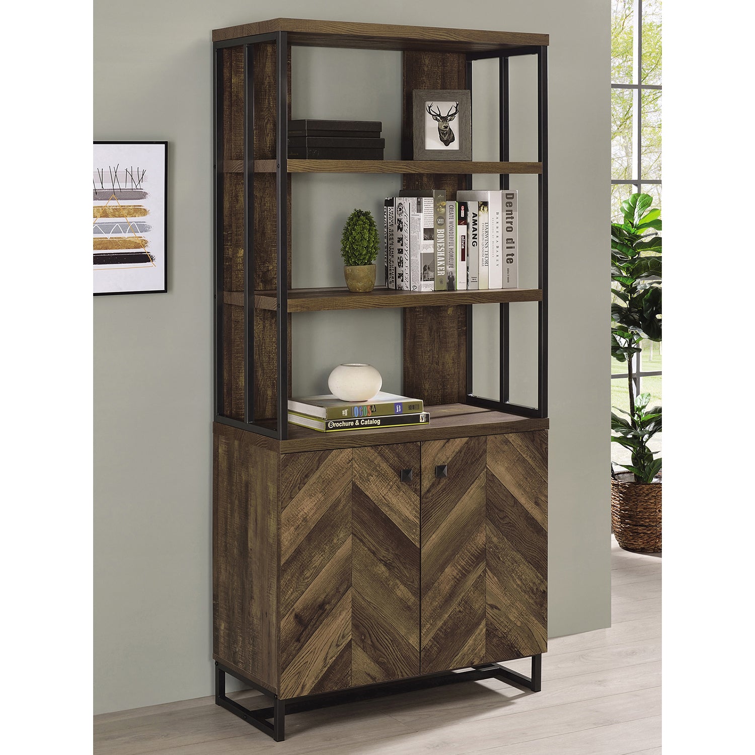 2 Door Bookcase In Rustic Oak Herringbone And Gunmetal 3 Dark Oak Open Back Particle Board Mdf