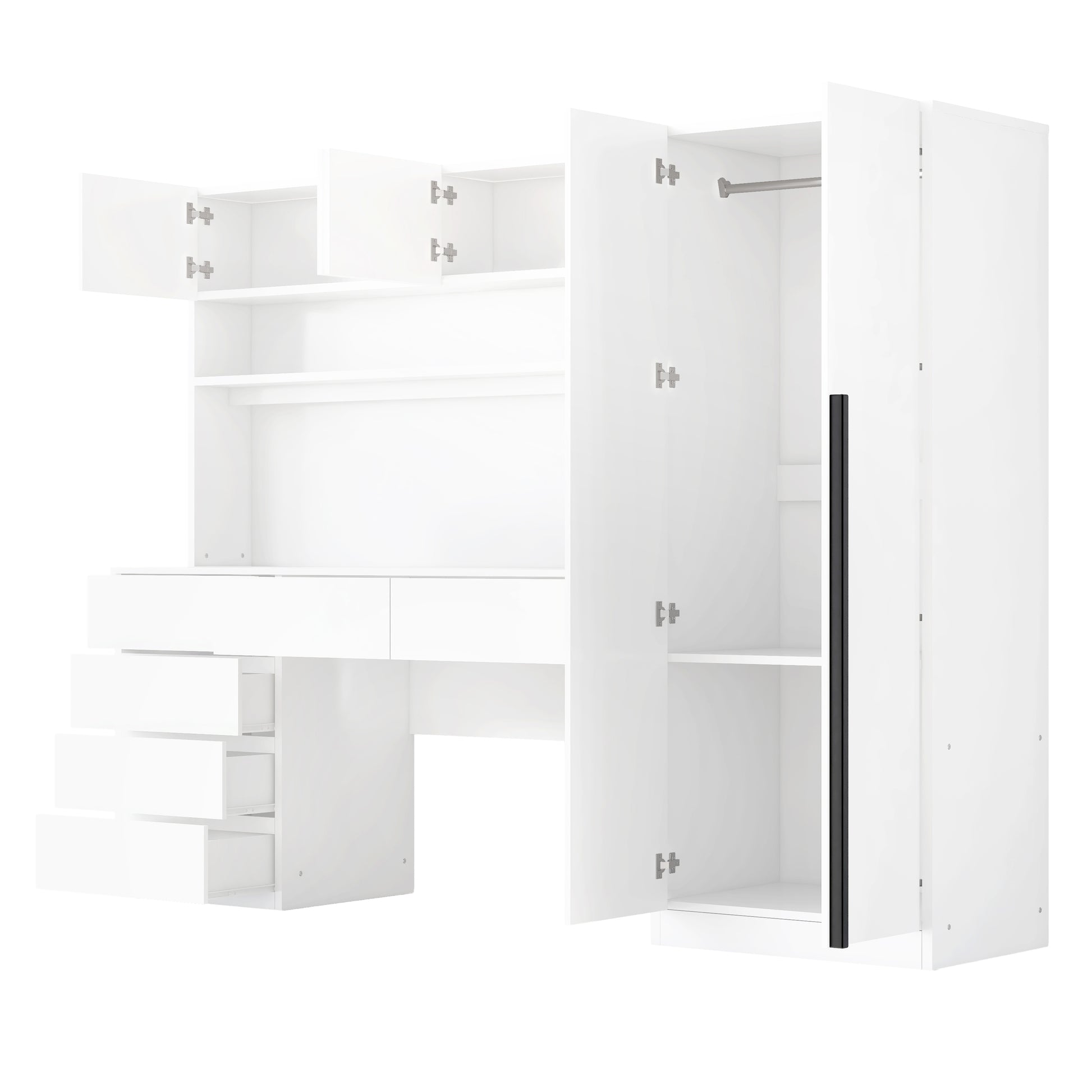 2 Door Wooden Storage Desk Wardrobe For Bedroom With Shelves And Drawers, White White Mdf Lvl