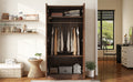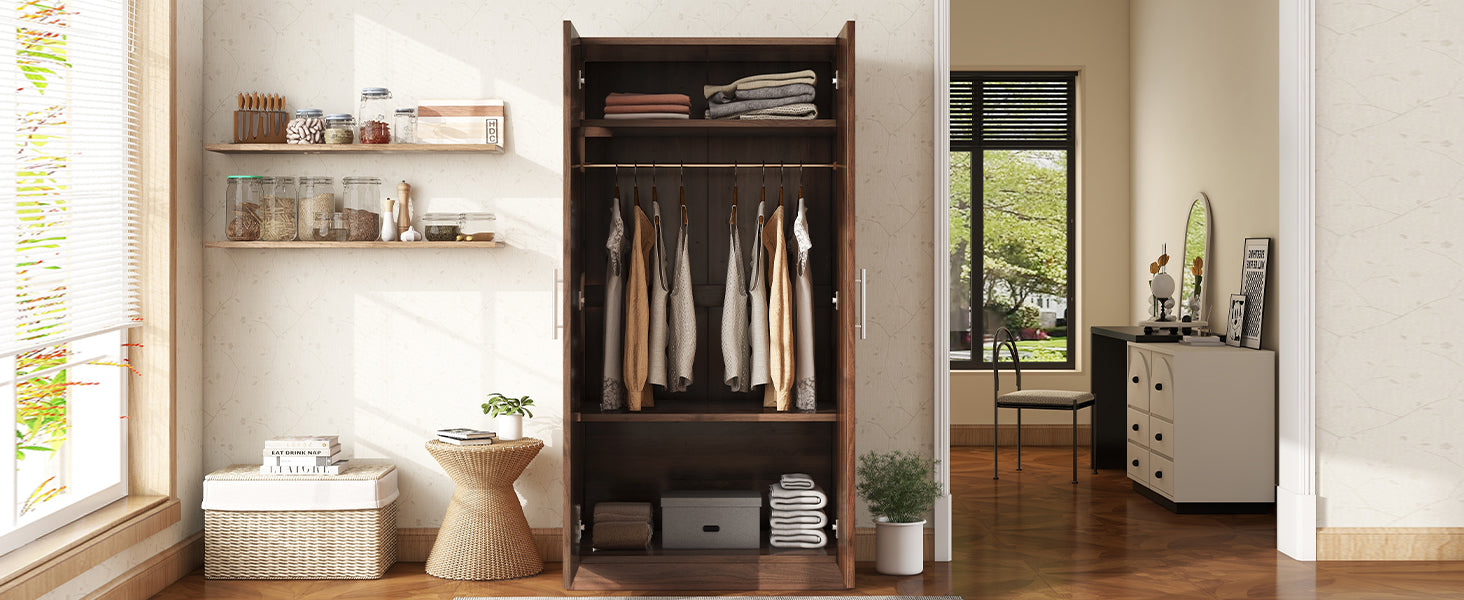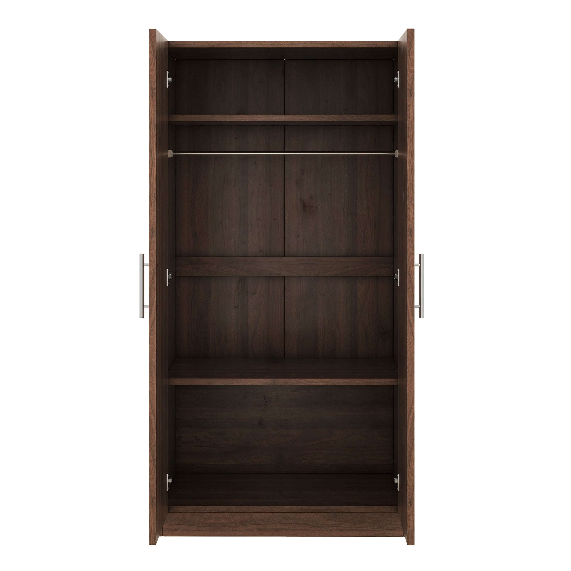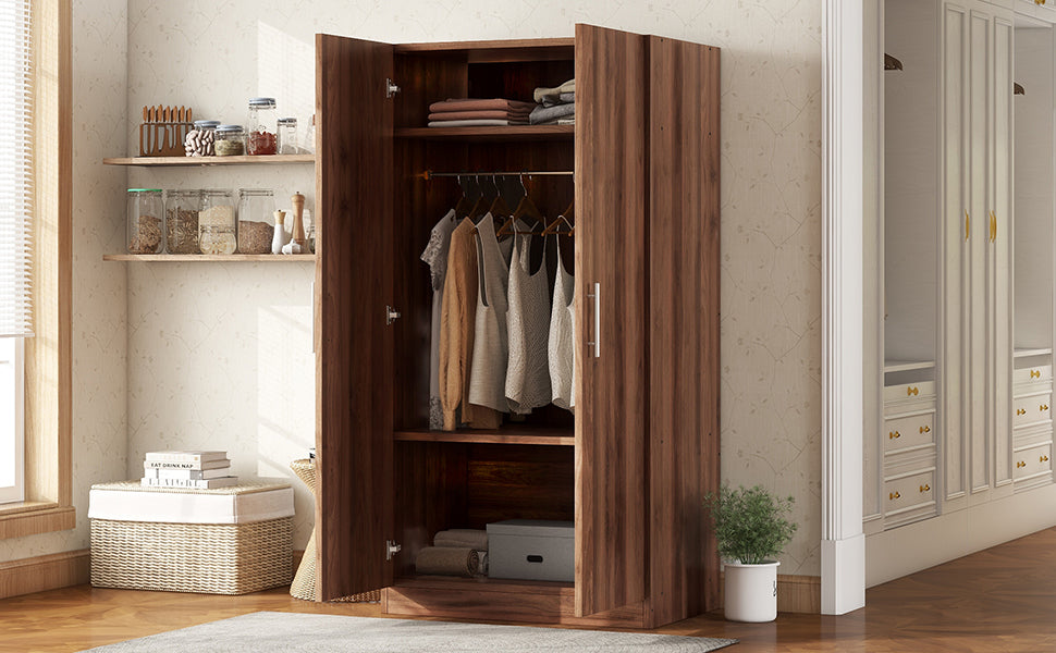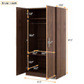 2 Door Wooden Wardrobe Armoire With 3 Storage Shelves, Brown Brown Solid Wood Mdf