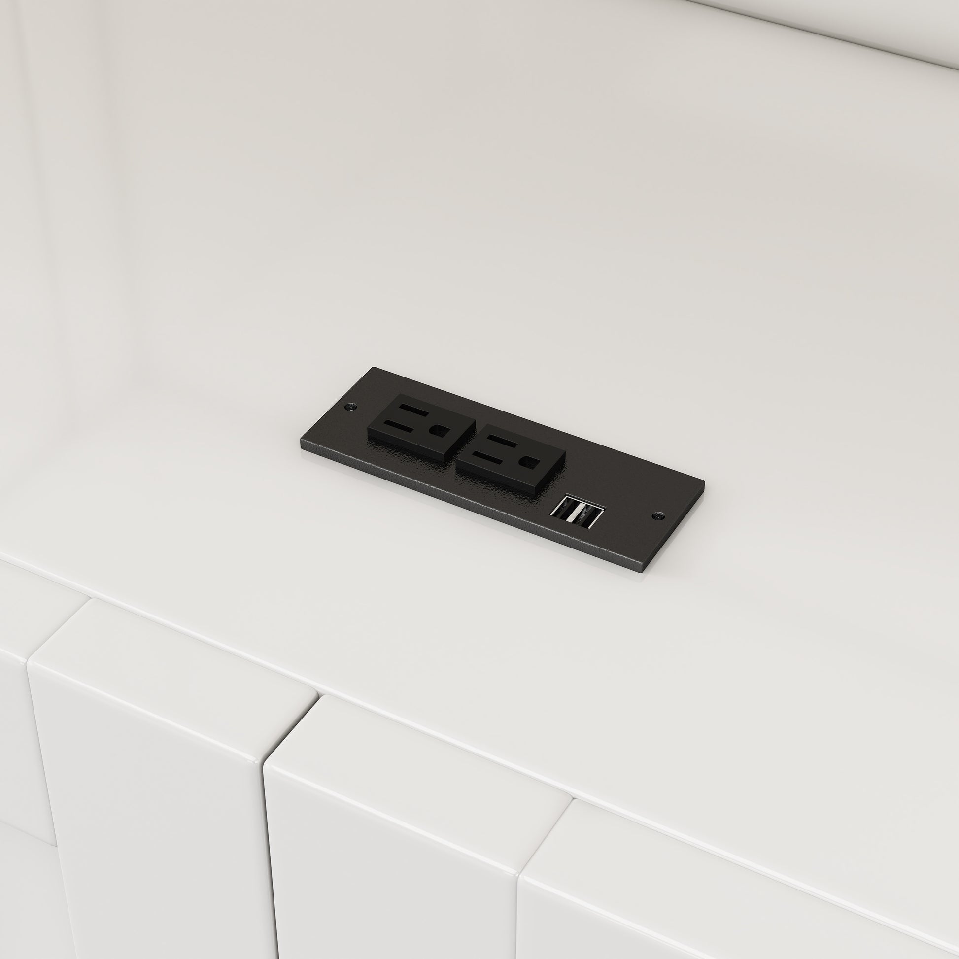 2 Doors Bookshelf With Usb Port 3 Adjustable And 3 Fixed Shelves Bookcase Side Cabinet Storage Shelves In White Old Sku:Wf311493Aac White Solid Wood Mdf