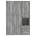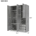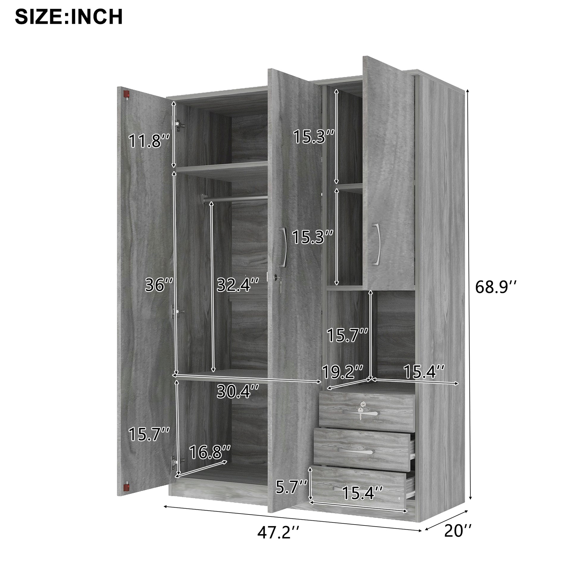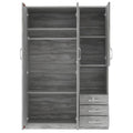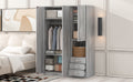 2 Doors Wooden Wardrobe Storage For Bedroom, With Shelves And 3 Drawers, Gray Gray Particle Board