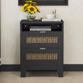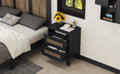2 Drawer Farmhouse Wooden Nightstand With Wooden Strip Decoration And Metal Handle, Wood Side Table With Storage Cabinet For Bedroom, Black Black Particle Board