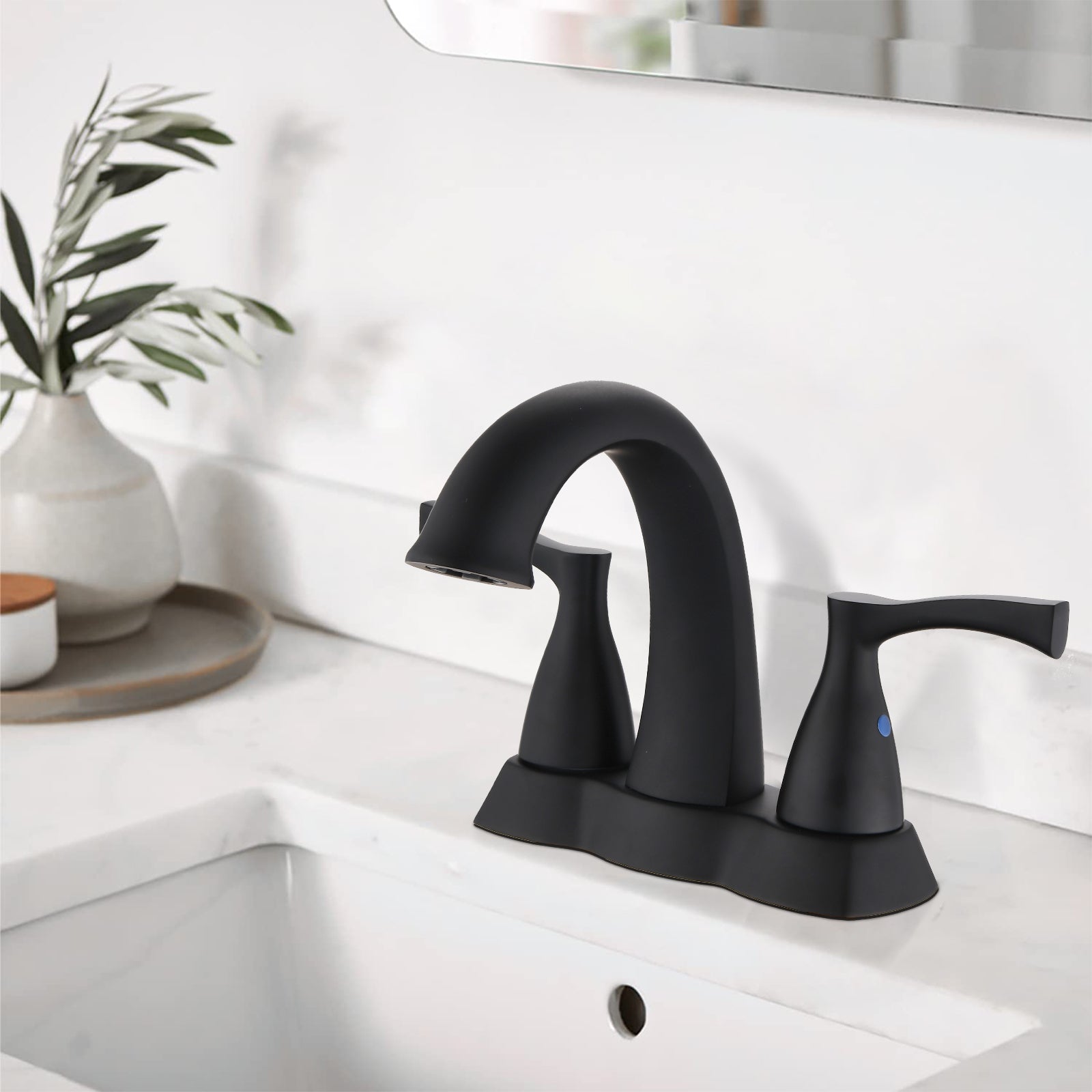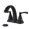 2 Handle 4 Inch Centerset Bathroom Sink Faucet With Pop Up Drain, Matte Black Matte Black Zinc