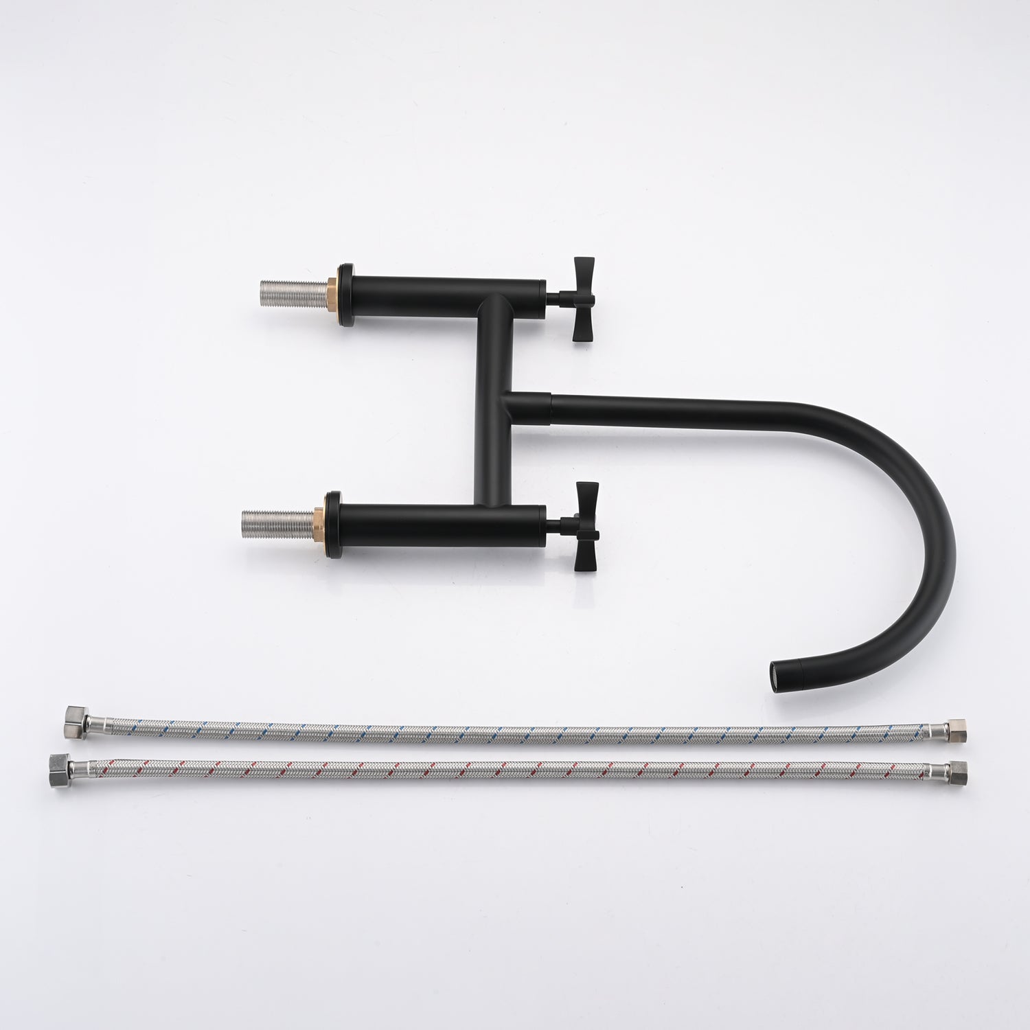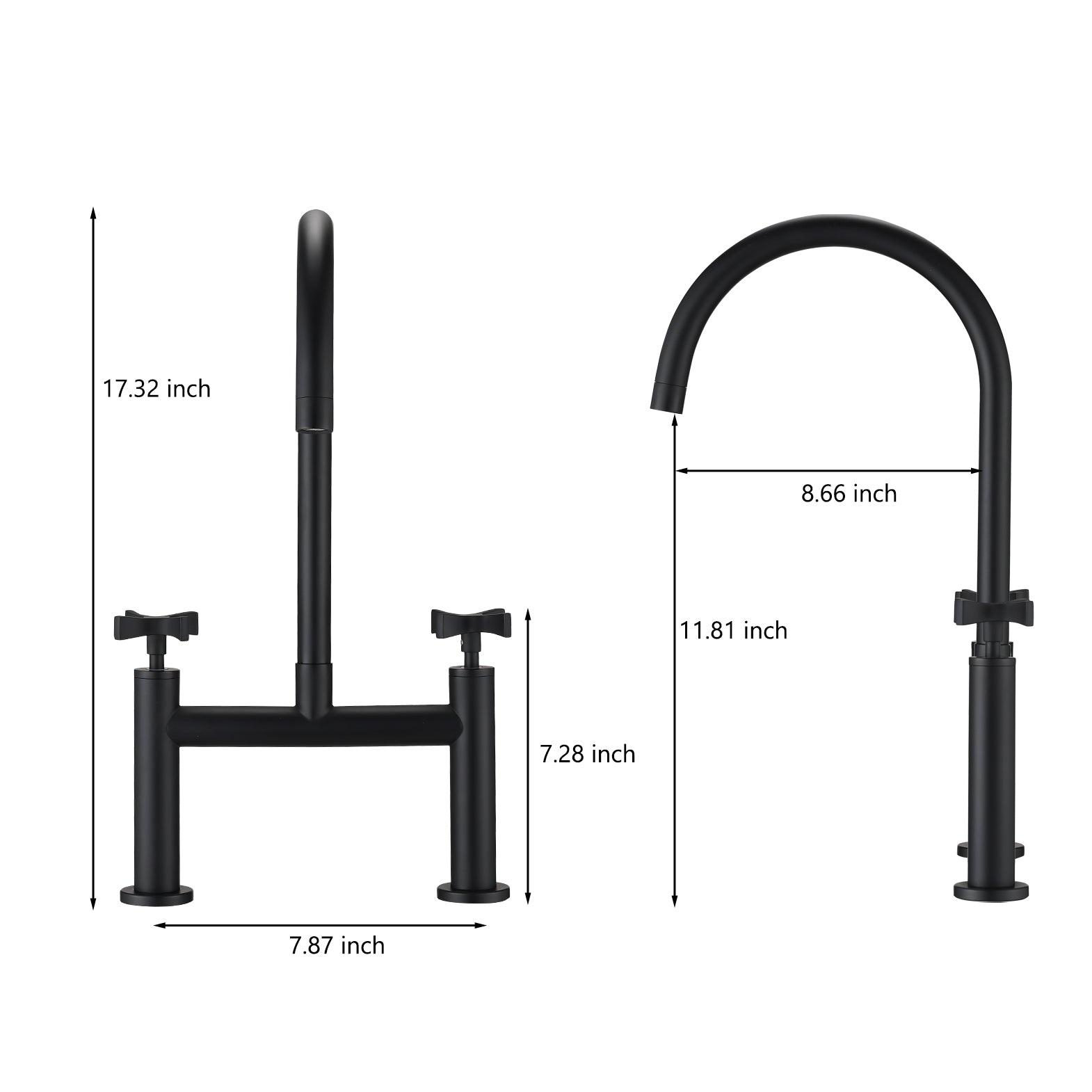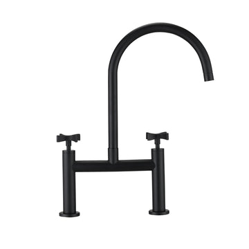 2 Handle Bridge Kitchen Faucet In Stainless Steel Matte Black Stainless Steel