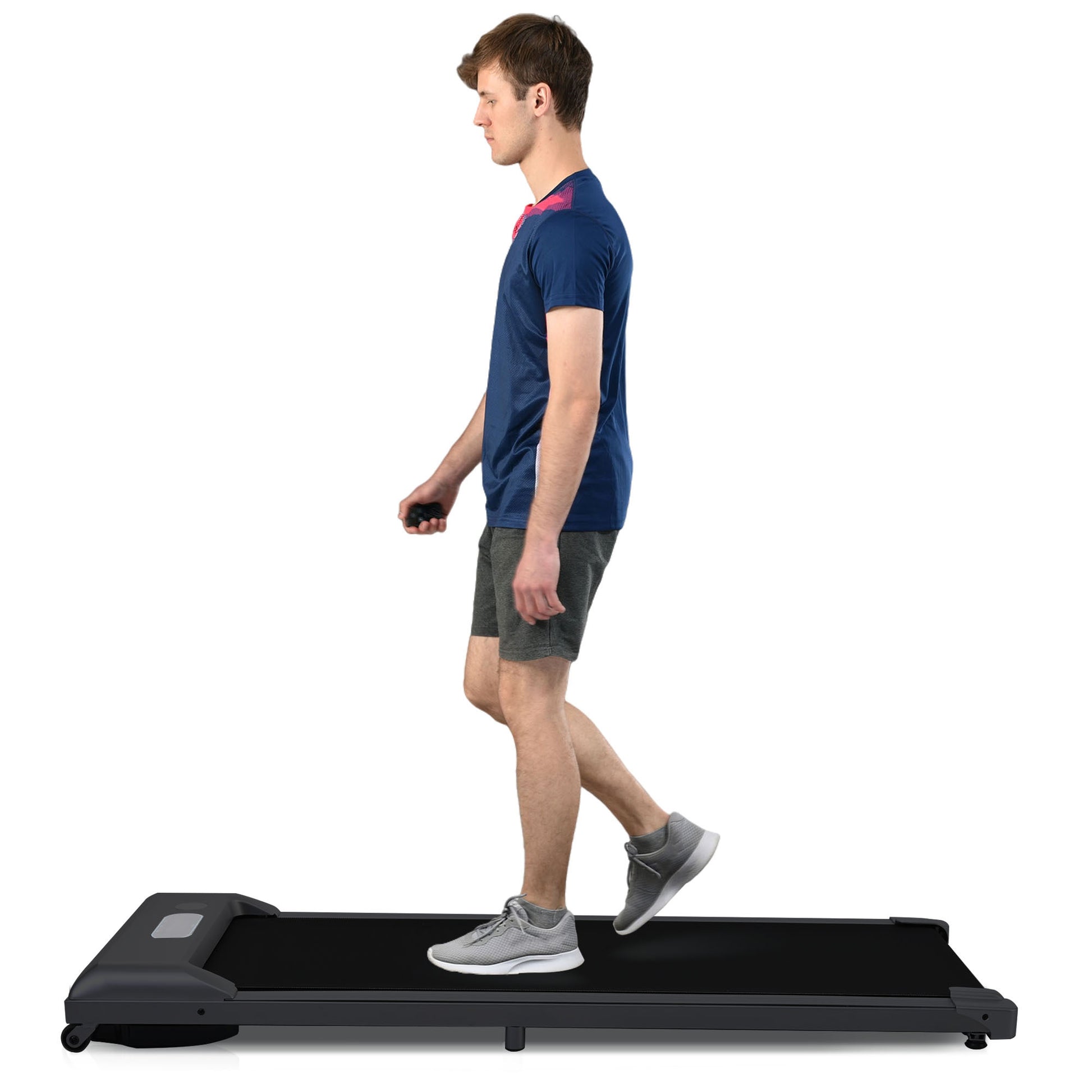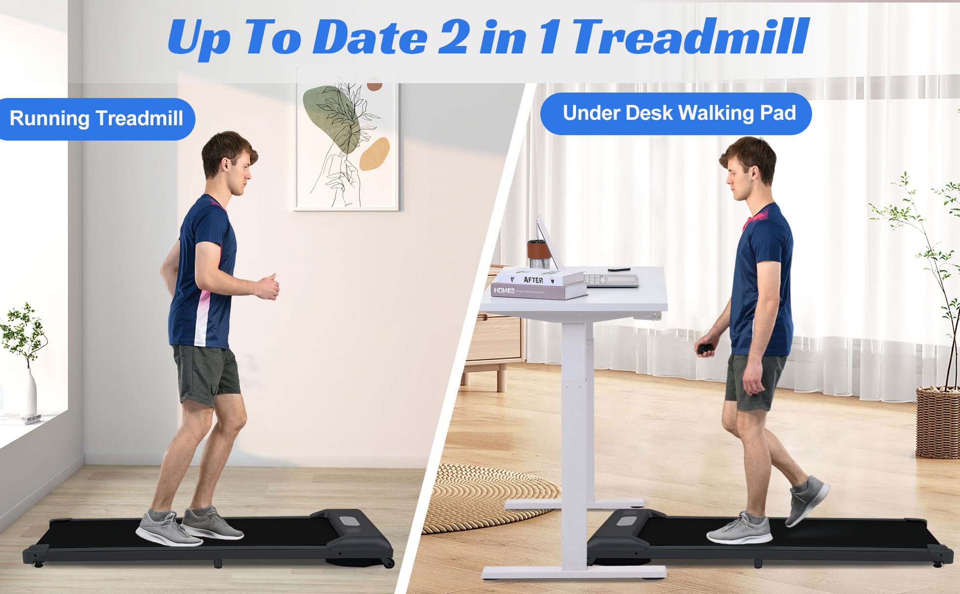 2 In 1 Under Desk Electric Treadmill 2.5Hp, Remote Control, Display, Walking Jogging Running Machine Fitness Equipment For Home Gym Office Black Metal