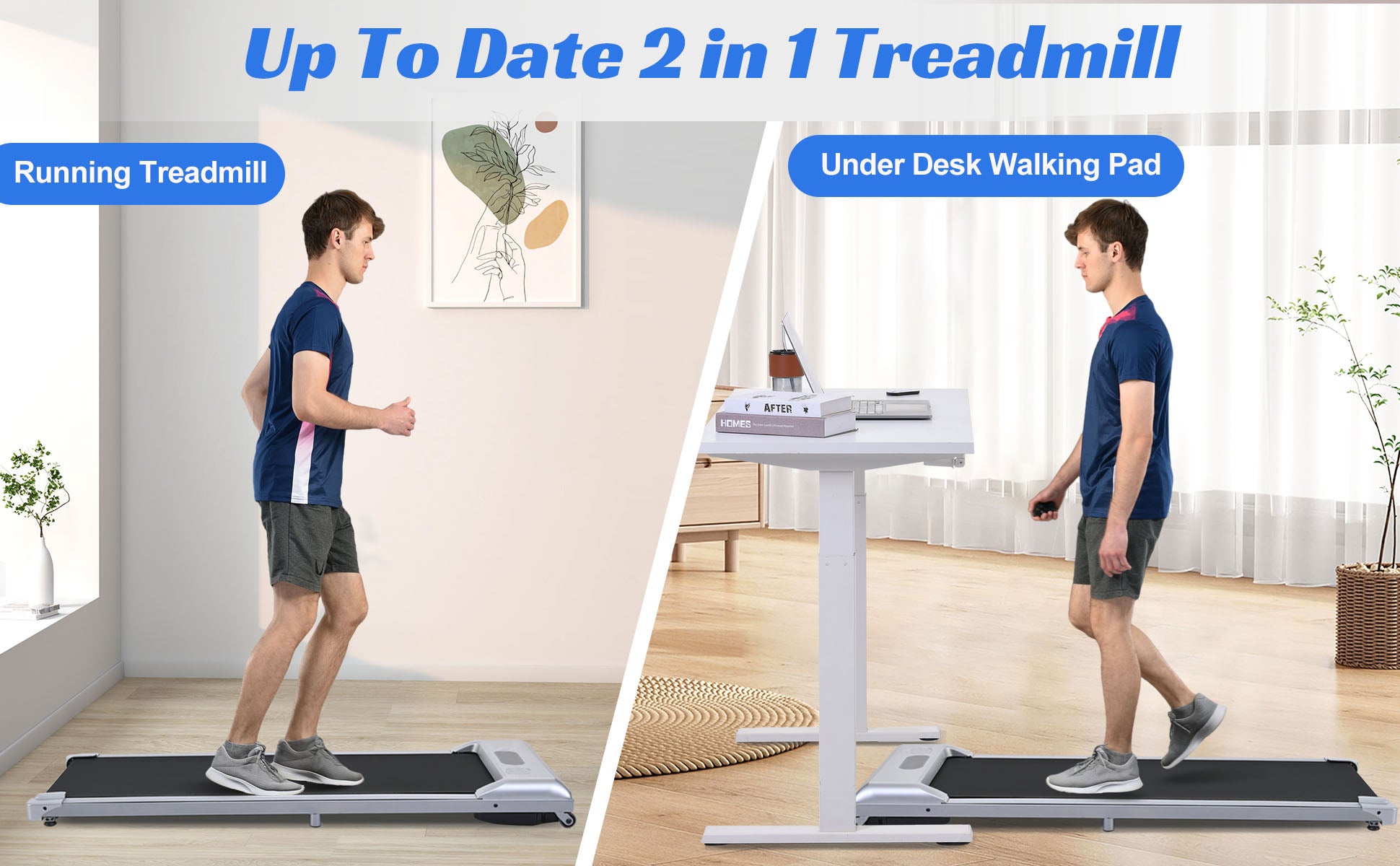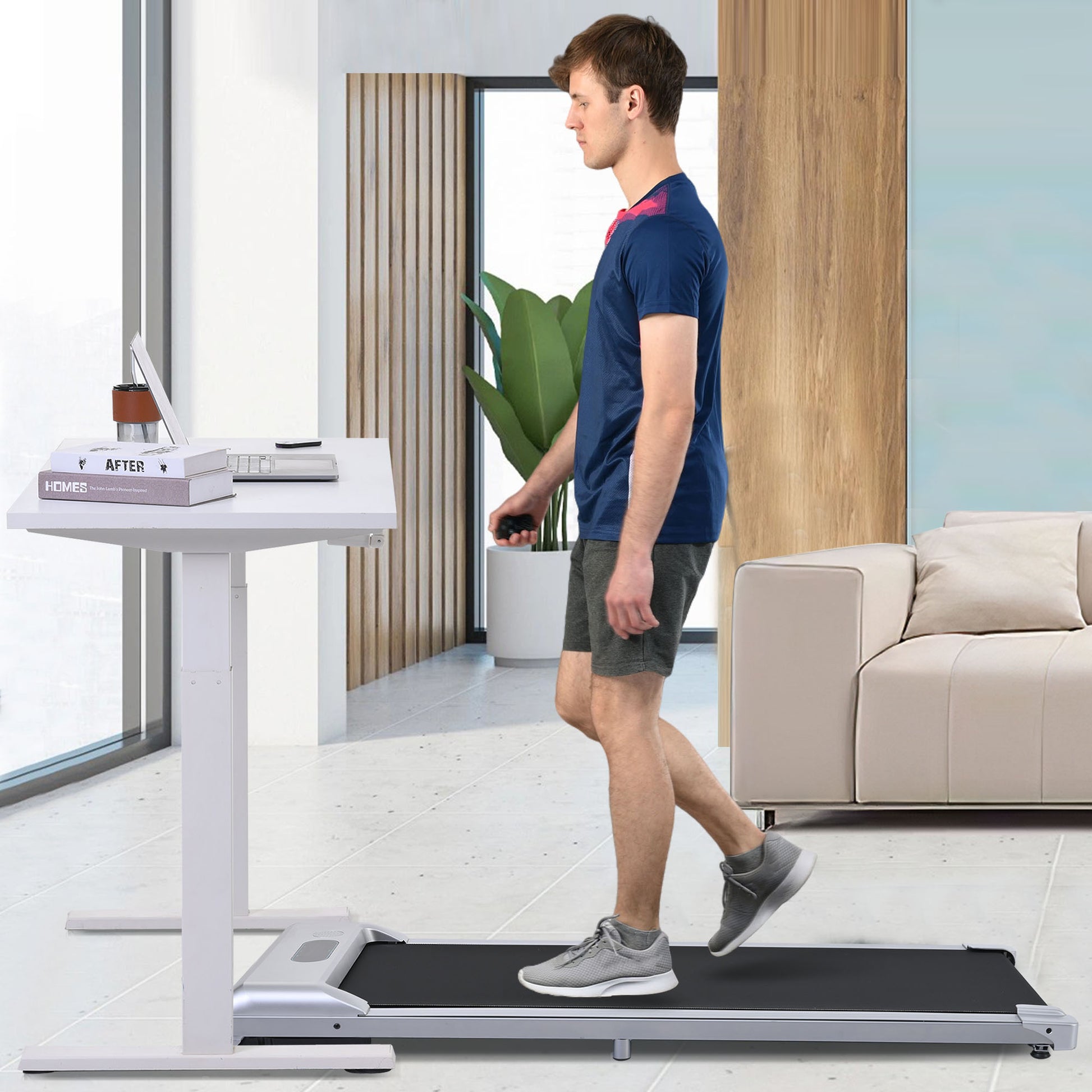 2 In 1 Under Desk Electric Treadmill 2.5Hp, Remote Control, Display, Walking Jogging Running Machine Fitness Equipment For Home Gym Office Silver Metal