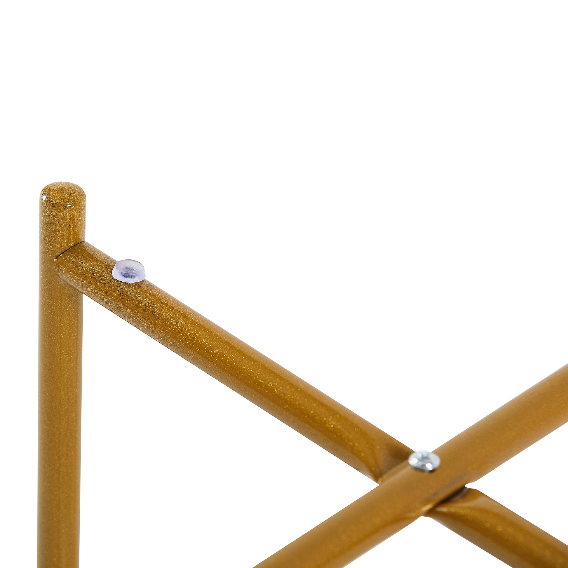2 Layer End Table With Tempered Glass And Marble Tabletop, Round Coffee Table With Golden Metal Frame For Bedroom Living Room Office 1 Piece White Metal
