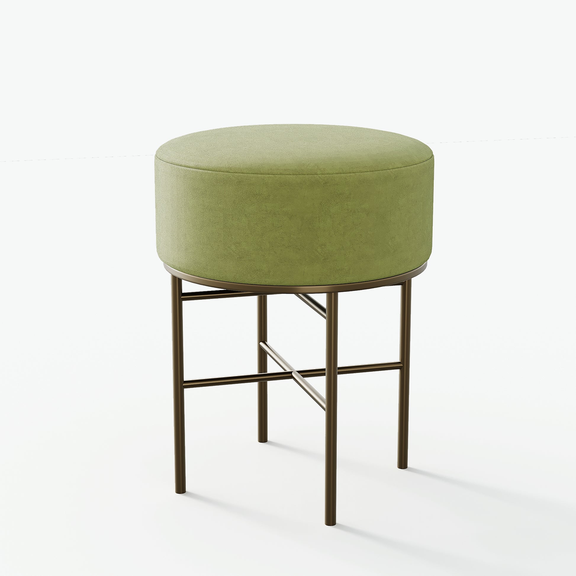 2 Pcs Round Cushioned Vanity Stool, Linen Upholstered Vanity Stool For Makeup Room, Modern Soft Stool For Bar And Dining, Ottoman Footrest Stool With Metal Legs For Living Room, Bedroom Matcha Green Matcha Green Vanity Stools Bedroom Round Modern