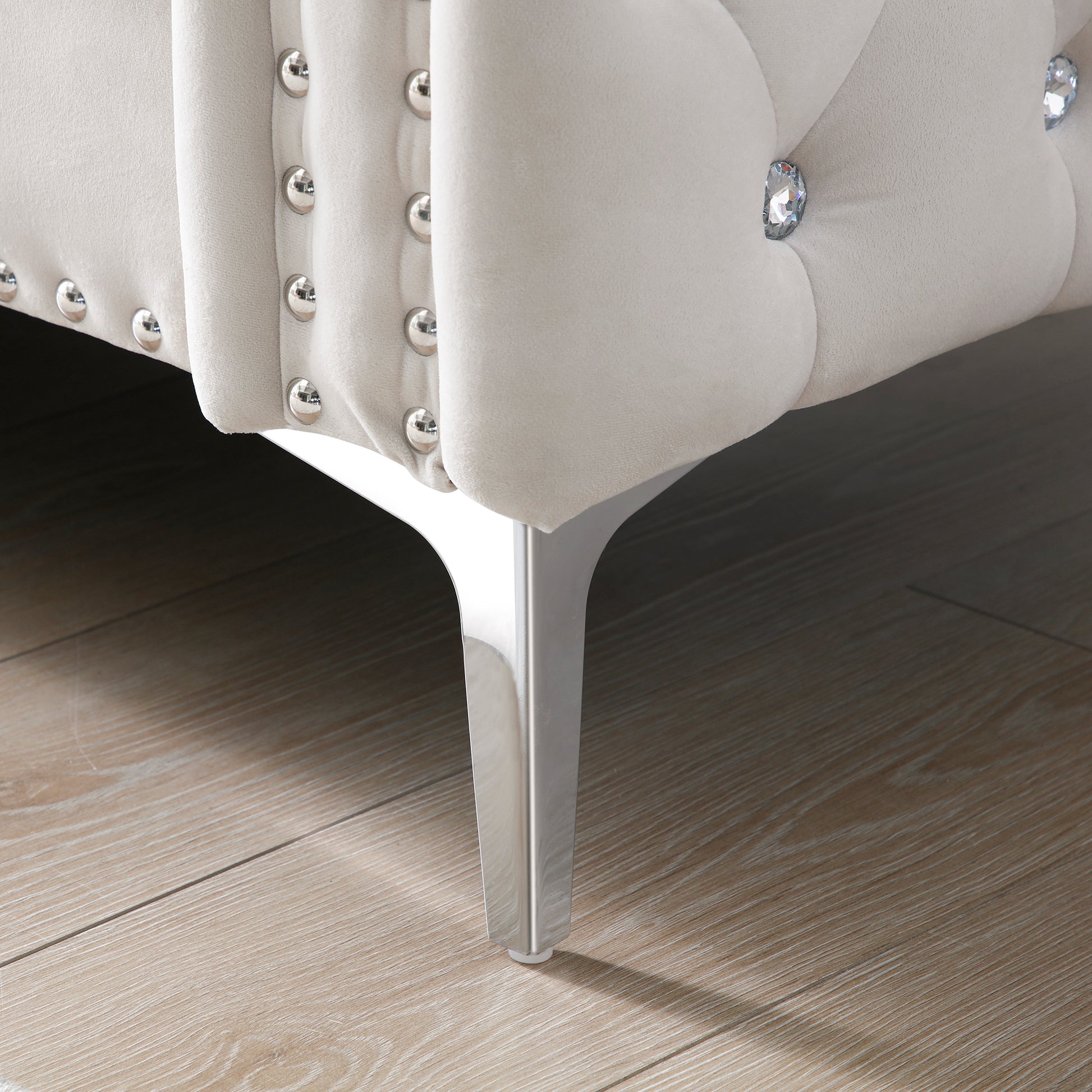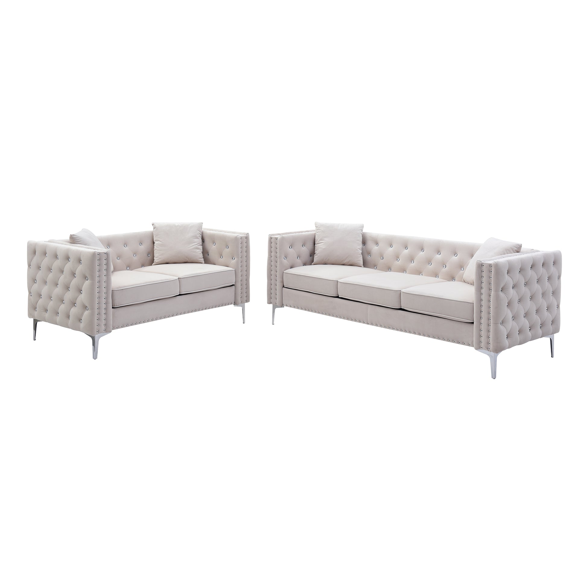 2 Piece Modern Velvet Living Room Set With Sofa And Loveseat,Jeweled Button Tufted Copper Nails Square Arms,4 Pillows Included,Beige,4 Colors Beige Primary Living Space Modern Velvet 5 Seat