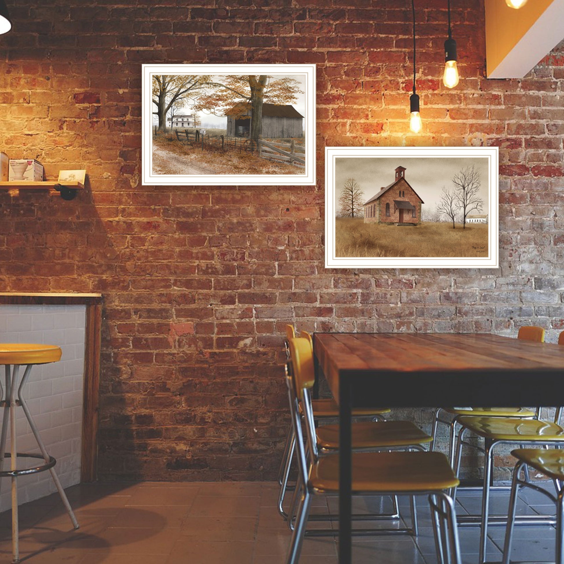 2 Piece Vignette Back To School, Old Country Road White Framed Wall Art For Living Room, Bedroom Wall Art Print For Home Decor By Billy Jacobs Multicolor Wood Paper