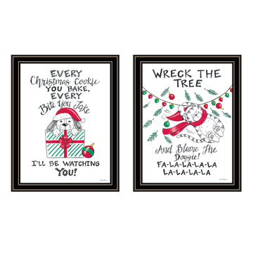 2 Piece Vignette Cat & Dog Christmas Enjoyment Black Framed Wall Art For Living Room, Bedroom Wall Art Print For Home Decor By Deb Strain Multi Wood Paper