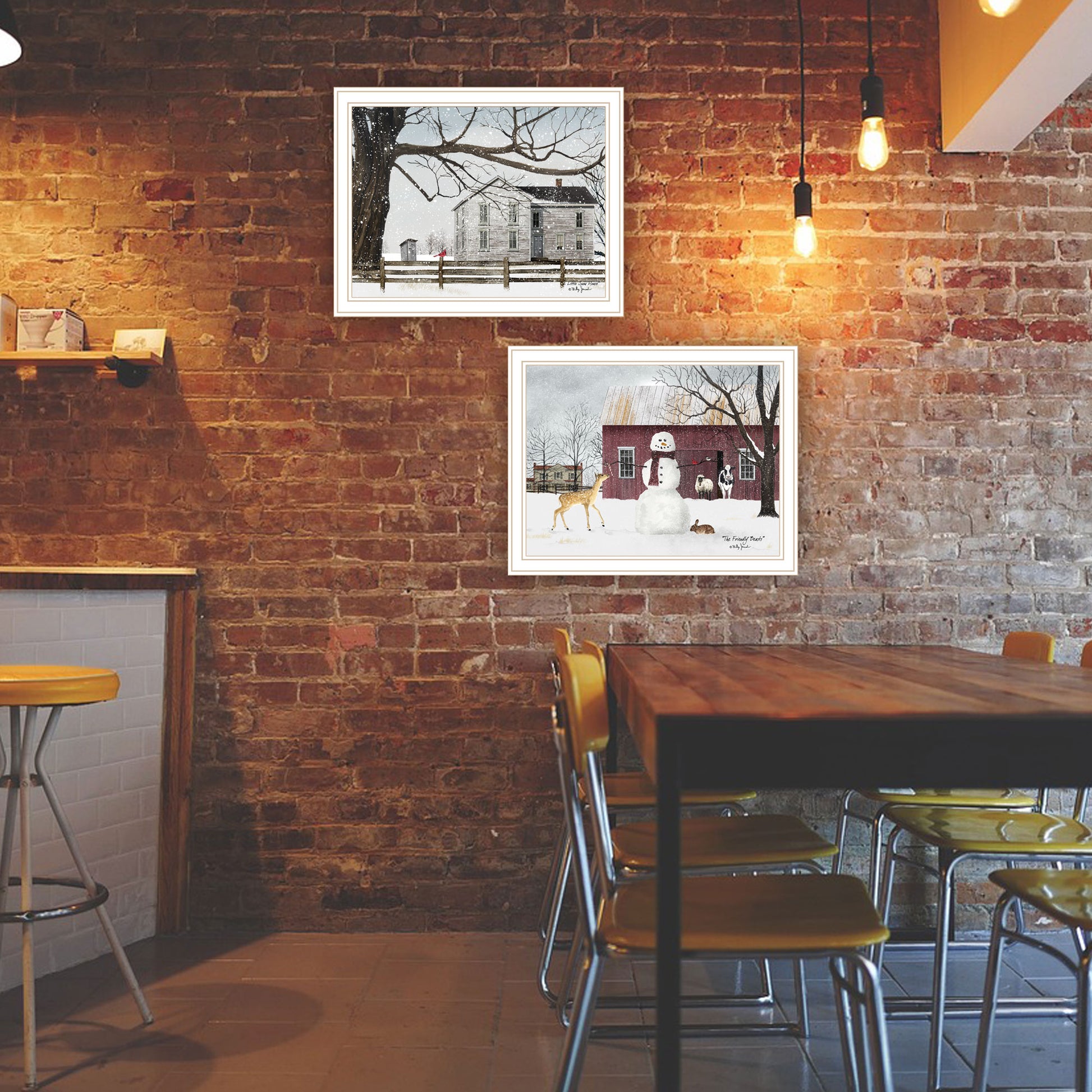 2 Piece Vignette Life In The Countryside Winter White Framed Wall Art For Living Room, Bedroom Wall Art Print For Home Decor By Billy Jacobs Multi Wood Paper