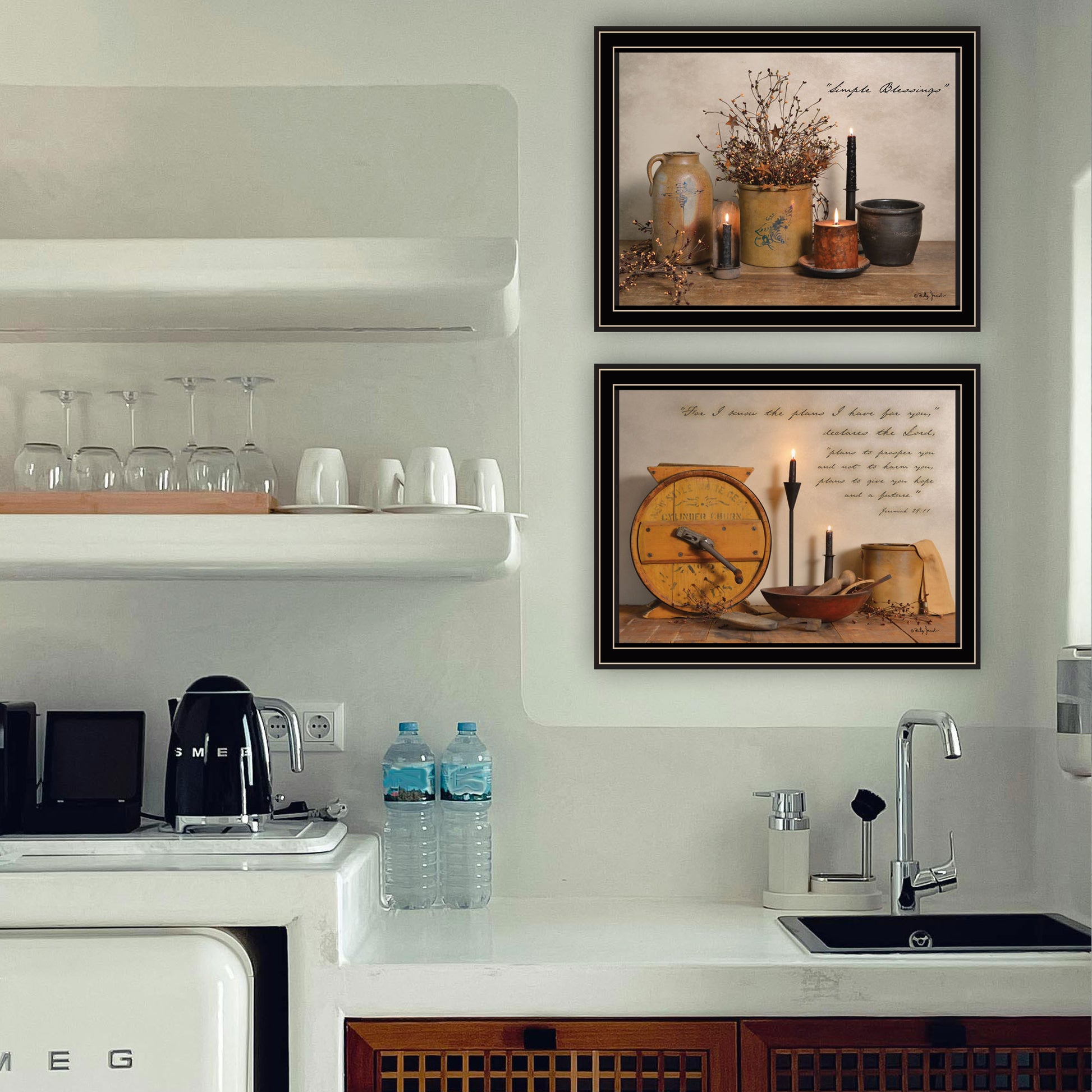 2 Piece Vignette Simple Blessings Black Framed Wall Art For Living Room, Bedroom Wall Art Print For Home Decor By Billy Jacobs Multicolor Wood Paper
