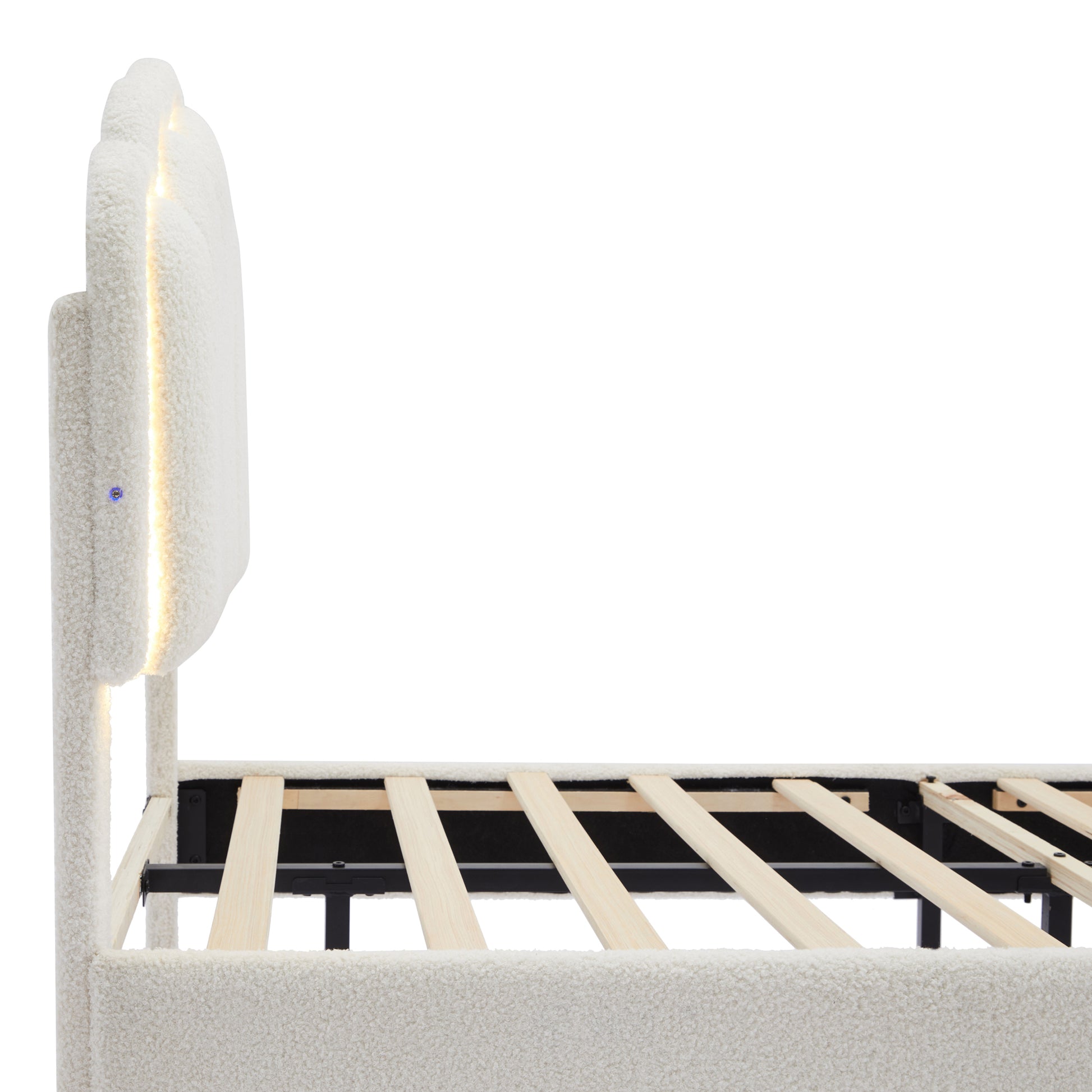 2 Pieces Bedroom Sets Twin Size Flower Shaped Upholstered Led Platform Bed With Storage Ottoman Sherpa Fabric, White Twin White 2 Piece Set Wood