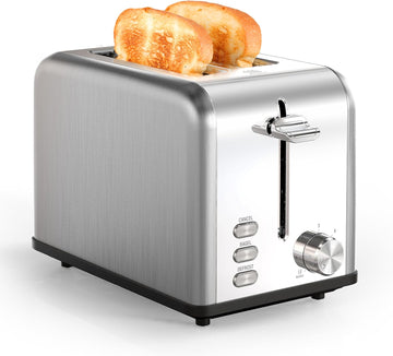 2 Slice Toaster With 6 Browning Setting And 3 Function, Extra Wide Slot & Removable Crumb Tray, Retro Stainless Steel Style, For Bread & Waffle Silver Stainless Steel