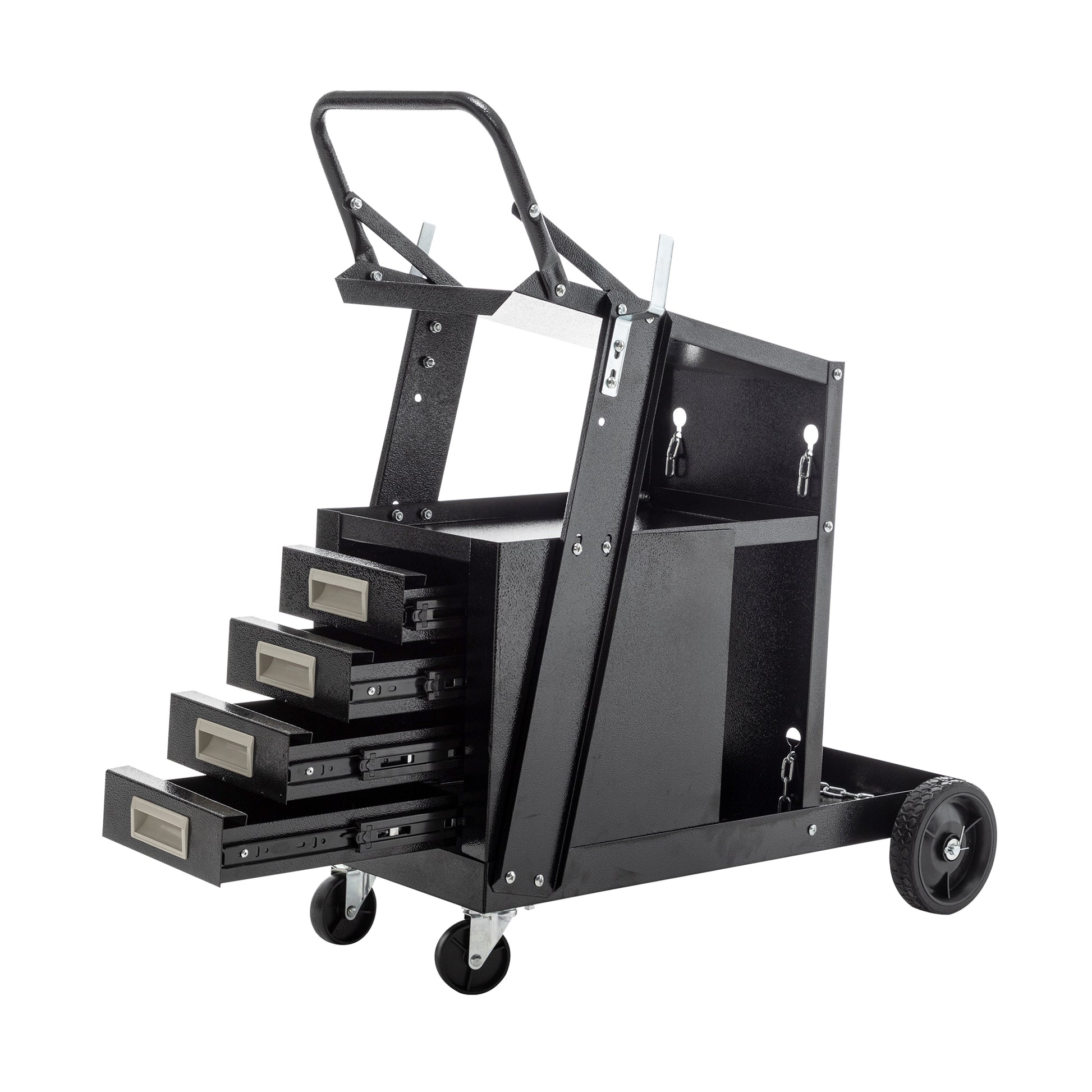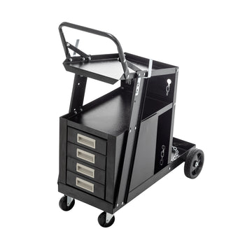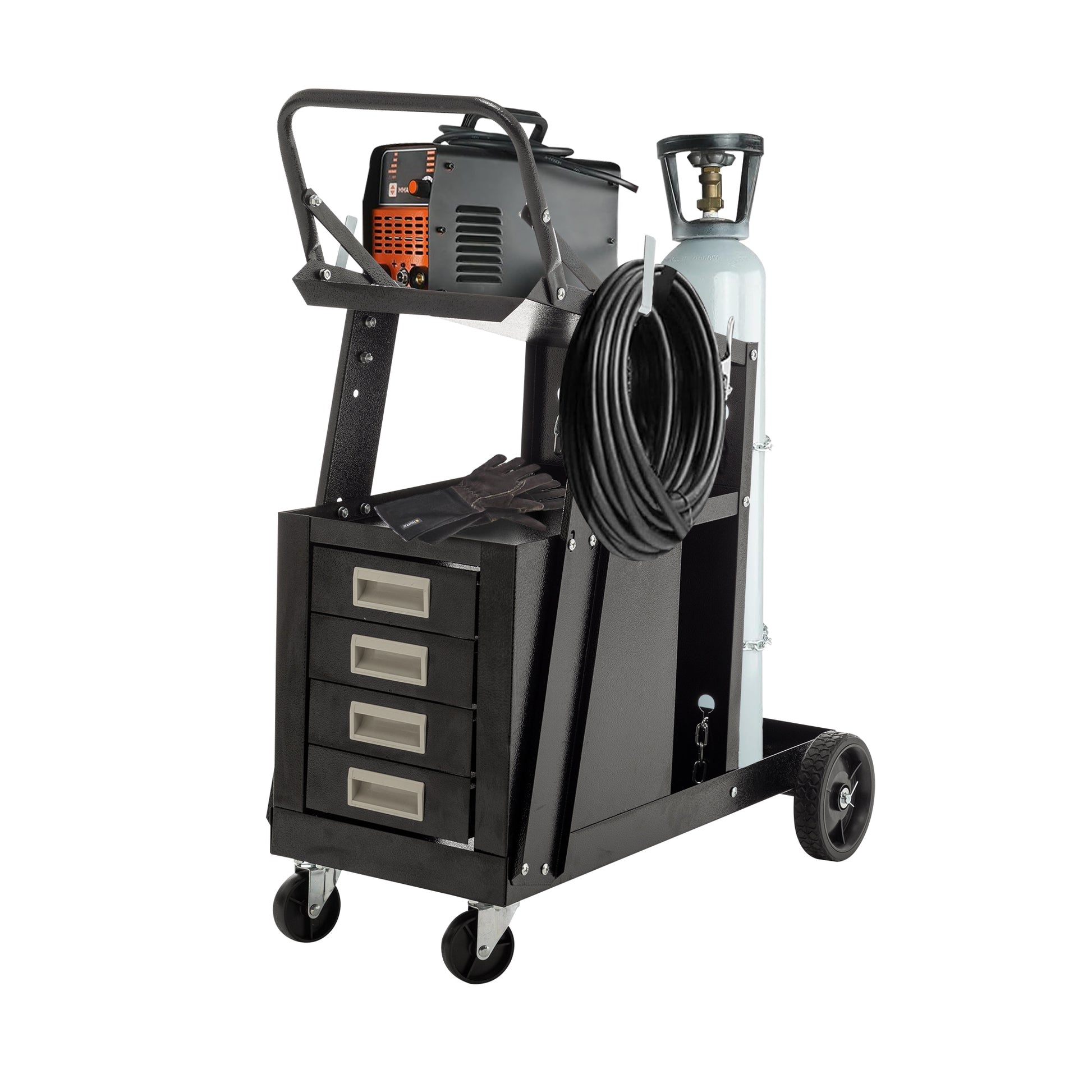 2 Tier 4 Drawers Welding Cart, Welder Cart With 265Lbs Static Weight Capacity, 360 Swivel Wheels, Tank Storage Safety Chains, Heavy Duty Rolling For Mig Welder And Plasma Cutter Black Metal