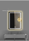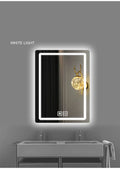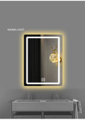 20*28 Inch Led Vanity Smart Mirror With Time And Temperature Display, Equipped With Defogging And Gradient 3 Color Lighting. Gloss White Glass