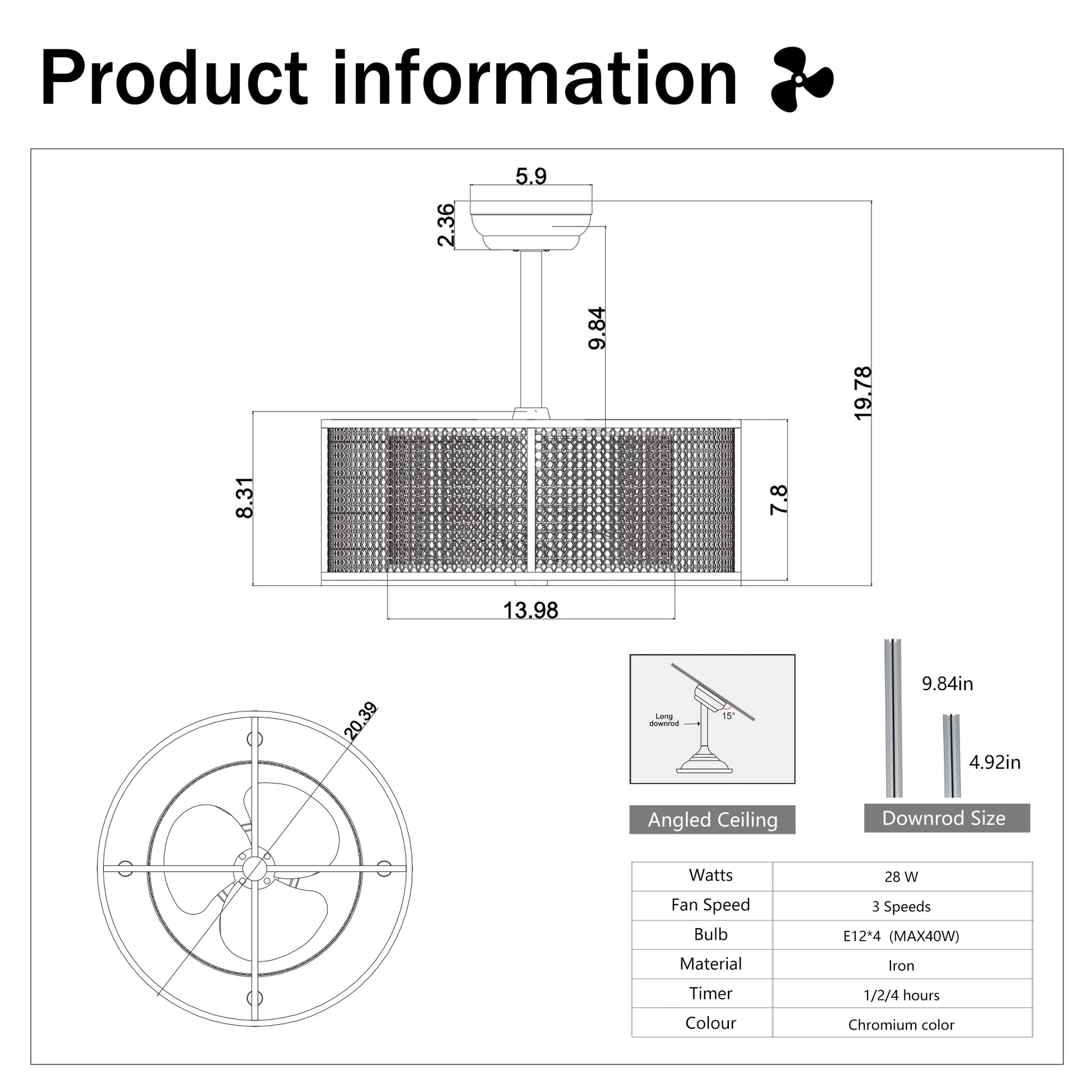 20.4'' 3 Abs Fan Blades Dual Shade Modern Ceiling Fan With Remote Control, Noiseless Reversible Ac Motor For Bedroom Living Room Study Patio,Chrome Chrome American Design,Farmhouse,Modern,Traditional,Vintage Abs Metal