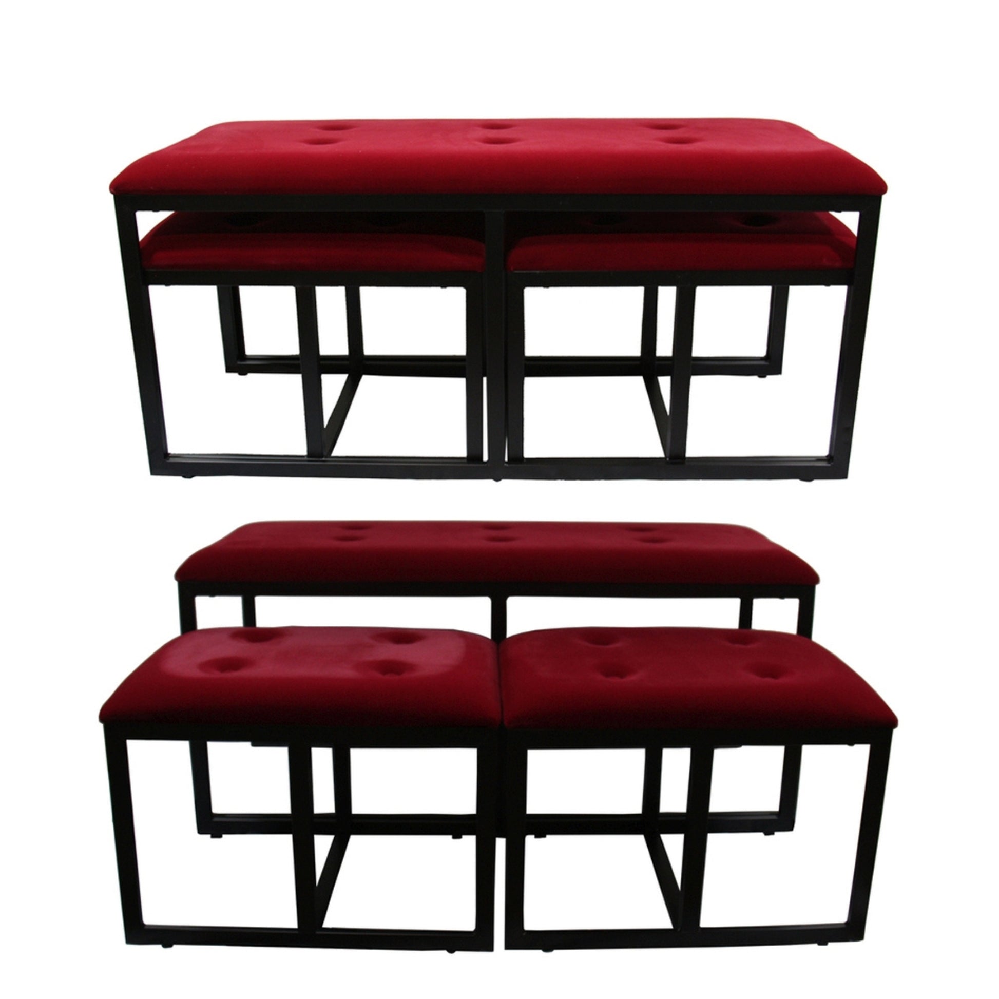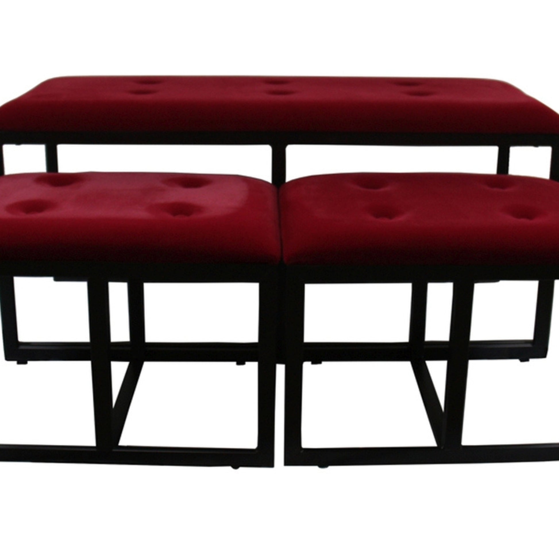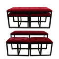 20.5" Tall Metal Bench With 2 Additional Seating, Black And Red Finish Black Metal