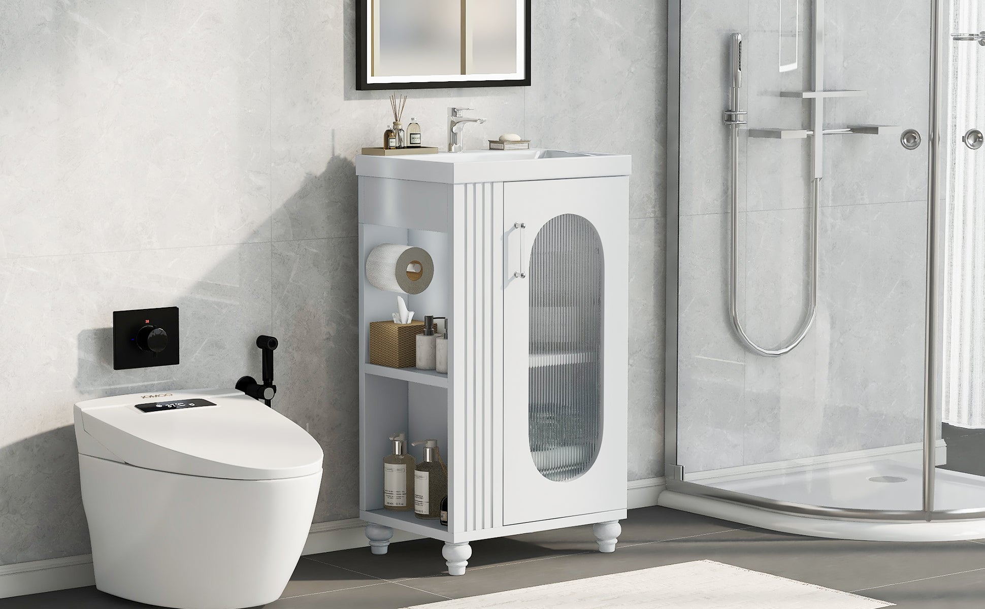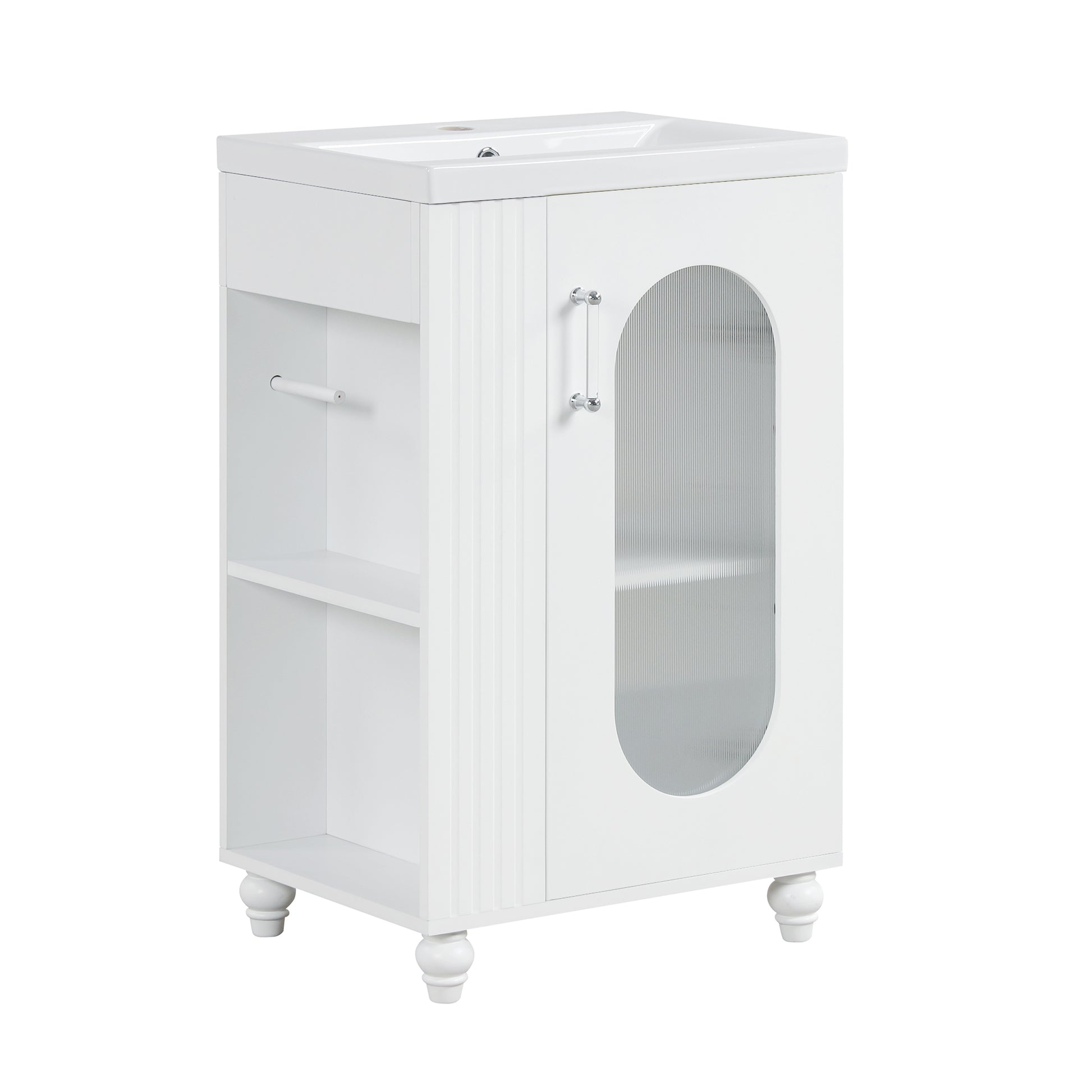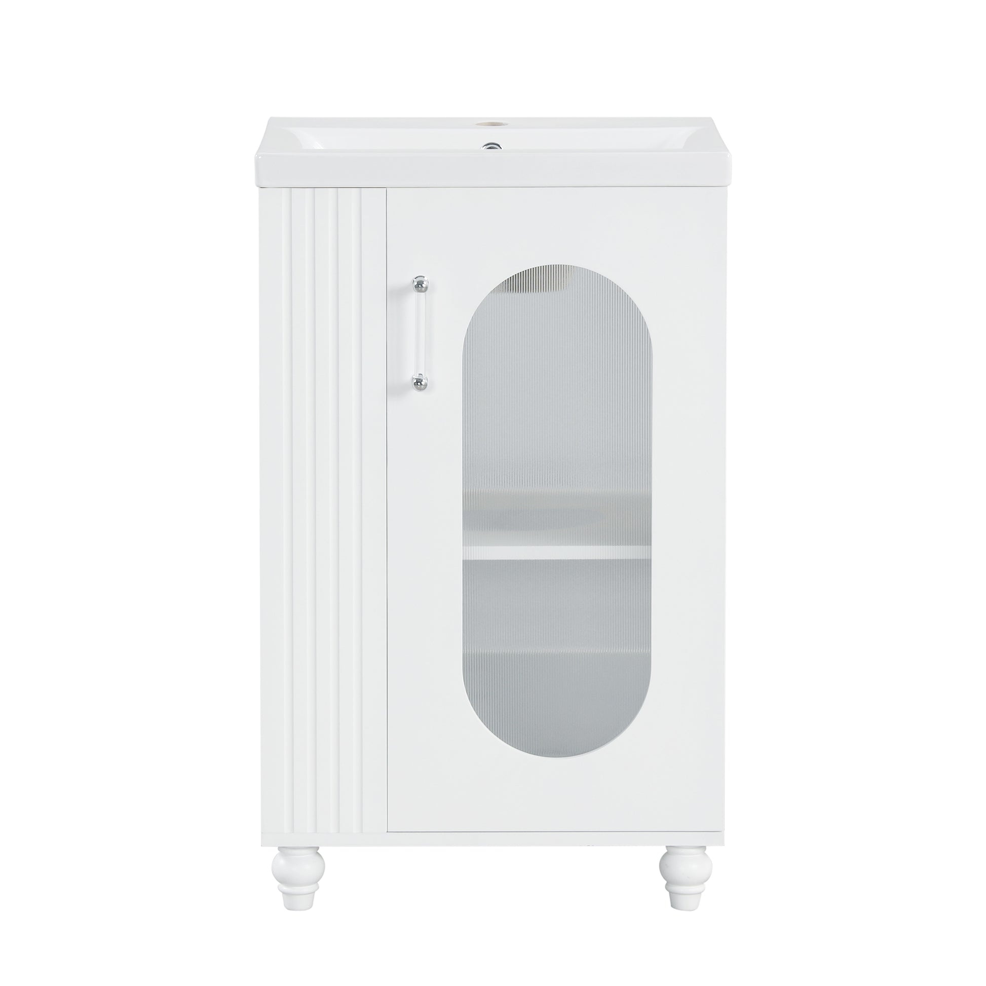20" Bathroom Vanity With Sink, Bathroom Vanity Cabinet With Two Tier Shelf, Adjustable Shelf, Solid Wood And Mdf, White White Mdf