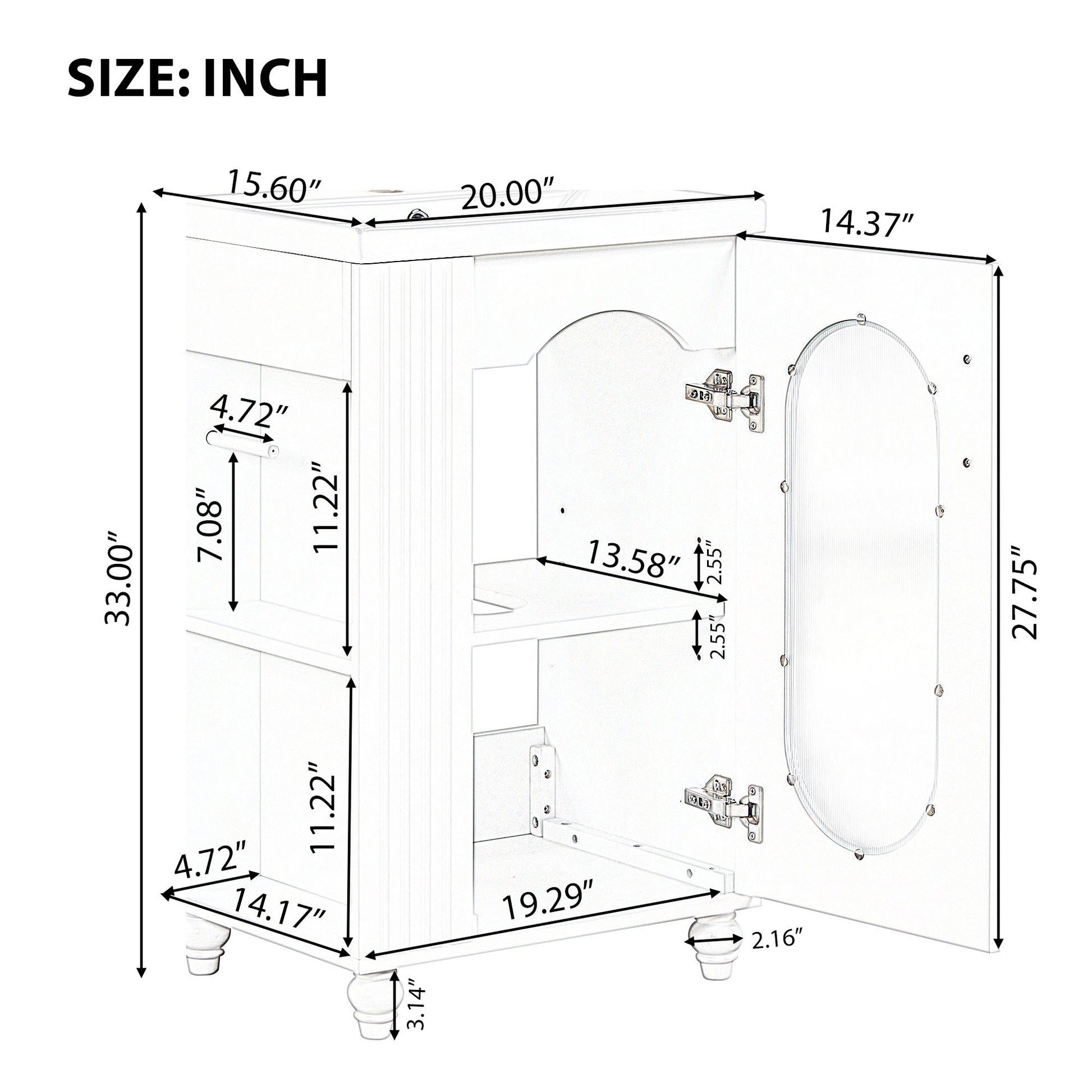 | Sink Top | 20"L x 15.6"w x 6.88"H |