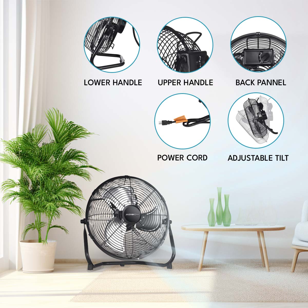 20 In. 3 Speed High Velocity Industrial Heavy Duty Metal Floor Fan In Black With Tilting Head For Outdoor Indoor Use Black Metal
