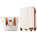 20 Inch Carry On Luggage With Expandable Travel Bag Set, Abs Hard Shell Two Piece Suitcase Set, Ivory And Brown Ivory Abs